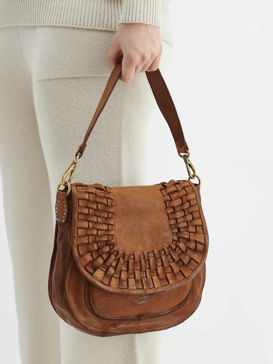 Die Boho-inspirierte Tasche von Campomaggi vereint edles Flechtleder mit zeitloser Halbmondform und bietet Funktionalität mit Vintage-Attitüde.