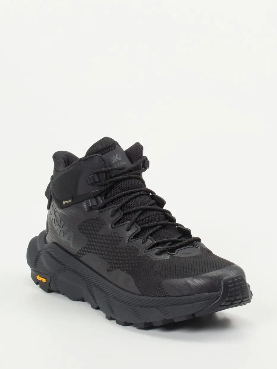 Mehr Grip auf jedem Terrain.Der knöchelhohe Wanderschuh von HOKA bringt technische Performance in den Outdoor-Alltag. Für anspruchsvolle Trails oder einen urbanen Gorpcore-Look: Das widerstandsfähige Obermaterial aus Mesh und Synthetik mit GORE-TEX®-Membran schützt zuverlässig vor Nässe und Wind. Ton-in-Ton gestaltet, überzeugt das Modell durch seine schwarze Farbgebung, die massive Silhouette und funktionale Details wie Ösenhaken und eine verstärkte Fersenkappe. Die Vibram-Gummisohle sorgt in Kombination mit der großzügigen Polsterung für hohen Komfort und sicheren Tritt. Einsetzbar von Freizeit bis Hochgebirge. Funktionalität und Design verschmelzen bei HOKA zum robusten Allrounder mit Stilanspruch.