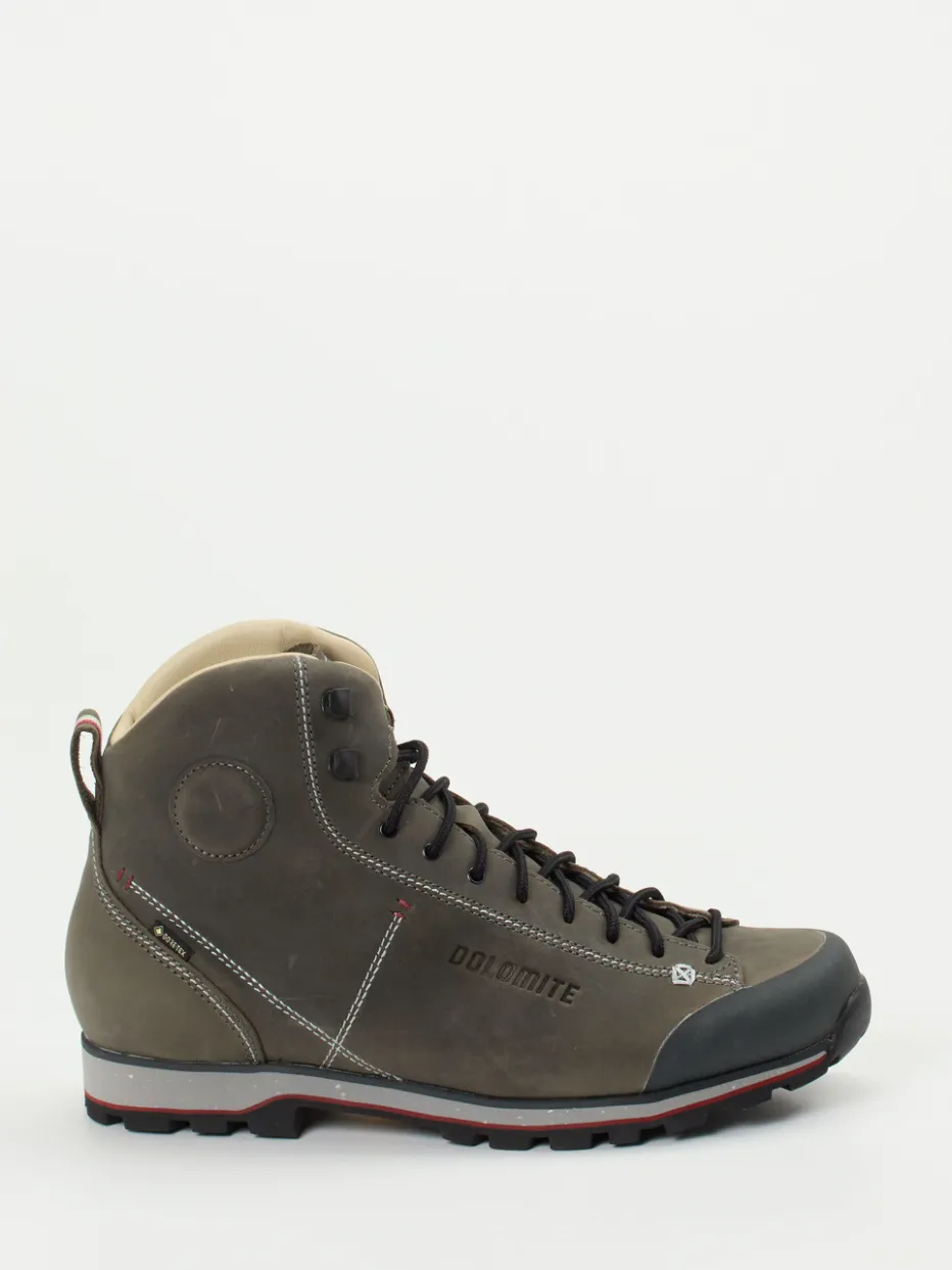 Ob auf herbstlichen Waldwegen oder spontanen Bergtouren – das Obermaterial aus samtig angeschliffenem Nubukleder in Olivgrau überzeugt durch Langlebigkeit und natürliche Optik. Eine wasserdichte GORE-TEX-Membran schützt vor Nässe, während das textile Innenfutter Komfort bei langen Strecken bietet. Die klassisch hochgeschlossene Form mit schwarzer Schnürung sorgt für optimalen Halt. Farbige Details wie die Fersenlasche in Italienfarben, Kontrastnähte und Logo-Prägung unterstreichen den Retro-Hiking-Look. Die profilierte Vibram-Gummisohle gewährleistet sicheren Tritt auf unebenem Terrain.