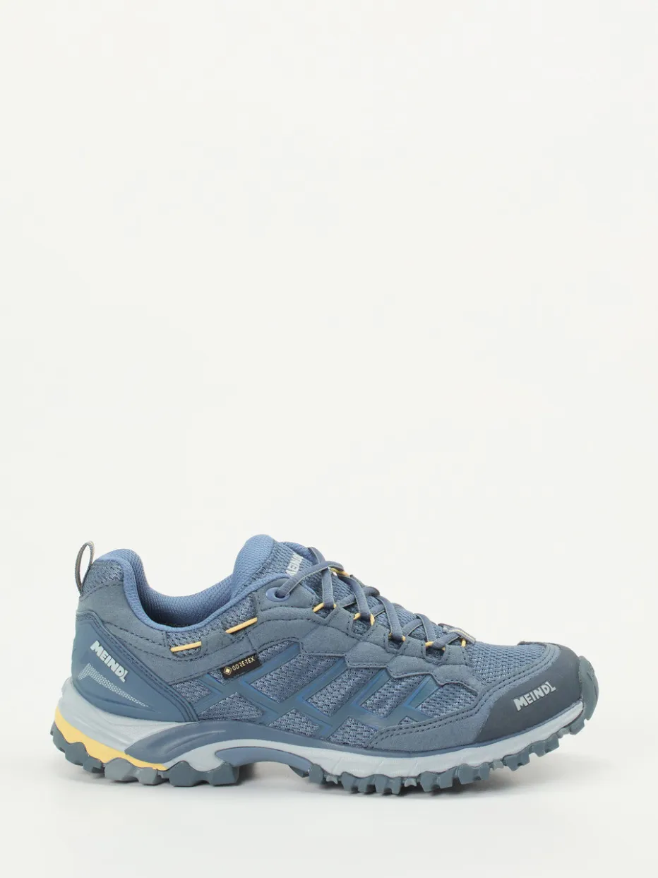 Wettertauglich auf jedem Trail.Meindl präsentiert funktionale Wanderschuhe in Low-Cut-Ausführung mit innovativem Wetterschutz. Ob spontane Tageswanderung oder ausgedehnter Spaziergang im Gelände – das wind- und wasserdichte Obermaterial aus Synthetik kombiniert mit matt strukturiertem Mesh sorgt für ein angenehmes Fußklima. Der Materialmix in Graublau, kontrastiert durch weizengelbe Akzente und dunkle Details, unterstreicht die sportlich-technische Silhouette. Features wie reflektierende Elemente, eine verstärkte Zehenkappe und die griffige Gummiprofilsohle erhöhen Schutz und Komfort. Stilistisch bewegt sich das Modell zwischen Gorpcore-Trend und praktischer Hiking-Funktion. Kombiniert mit Funktionskleidung entsteht ein urban-outdoorfähiger Look. Komfort und technische Performance treffen auf Meindl-Qualität für vielfältige Einsätze.