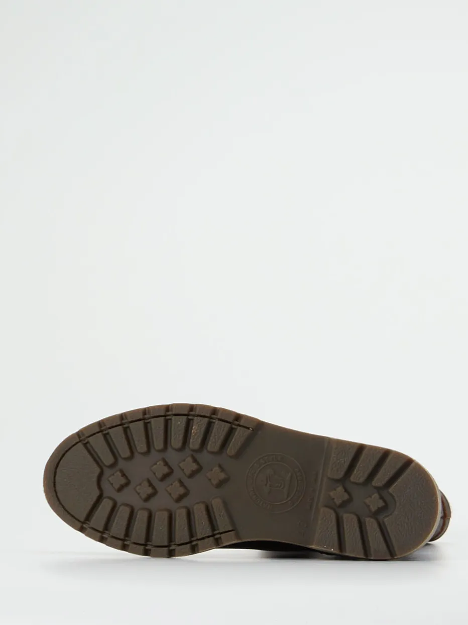 Stilsicher durch kalte Tage.Panama Jack präsentiert wetterfeste Damen-Stiefel für die kalte Jahreszeit. Ideal für winterliche Alltagswege: Gefertigt aus robustem, kaffeebraunem Fettleder mit genarbter Oberfläche bieten sie zuverlässigen Schutz vor Kälte und Nässe. Das herausnehmbare Innenfutter aus natürlichem Lammfell sorgt für behagliche Wärme. Charakteristisch sind die gerade Schaftform, der praktische seitliche Reißverschluss und Kontrastnähte, ergänzt durch eine Outdoor-Profilsohle mit Holzoptik-Rahmen. Workwear-inspiriertes Design trifft auf Quiet-Luxury-Anmutung. Langlebig gefertigt mit Fokus auf Komfort und Funktionalität – für kompromisslose Winterlooks.