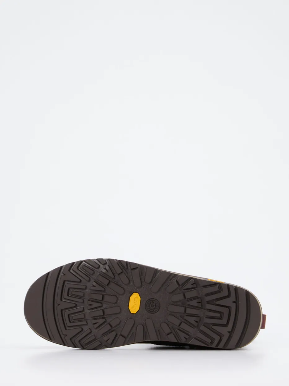Die kombinierten Materialien Veloursleder, Lammfellfutter und robuste Gummisohle verleihen diesen UGG-Winter-Boots eine gelungene Balance aus Komfort, Funktionalität und stilvoller Outdoor-Ästhetik.