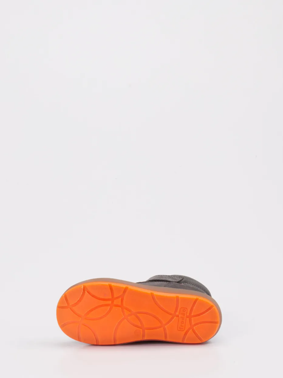 Ideal für kalte Tage auf dem Spielplatz oder beim Waldspaziergang: Diese knöchelhohen Winterboots bestehen aus grauem Veloursleder mit matter Oberfläche und sind innen warm mit Wolle gefüttert. Kontrastnähte in Orange, ein reflektierender Fersenbesatz sowie ein praktischer Klettverschluss mit Gummischnürung bieten Alltagstauglichkeit und Sichtbarkeit. Die profilierte, orangefarbene Gummisohle sorgt für sicheren Halt bei jedem Wetter. Inspiriert von Outdoorwear und Streetwear passen sie bestens zu lässiger Winterkleidung.