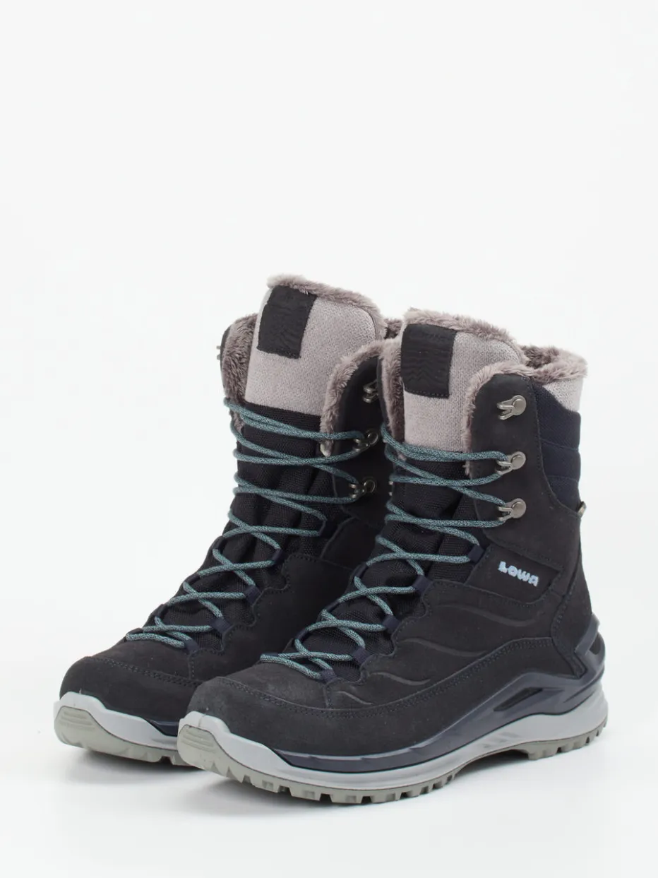 Der hoch geschnittene Outdoor-Stiefel von Lowa verbindet winterfeste Funktionalität mit robustem Veloursleder und wasserdichter GORE-TEX-Membran – ideal für anspruchsvolle Wanderungen bei Kälte.