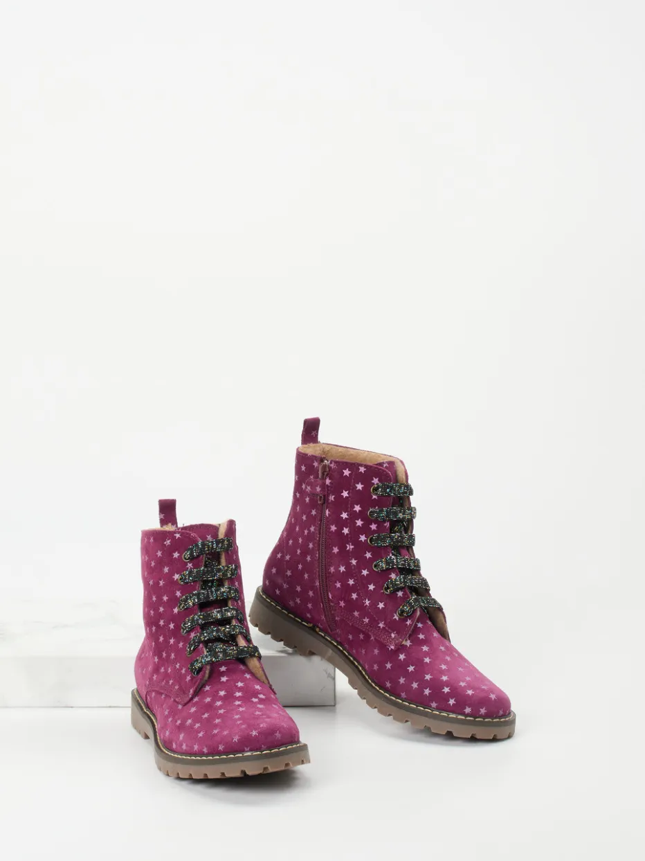 Der beerenpinke Schnürboot vereint kindgerechten Komfort mit ausdrucksstarkem Design. Glitzerschnürung, Sternmuster und robuste Gummisohle setzen winterliche Akzente.