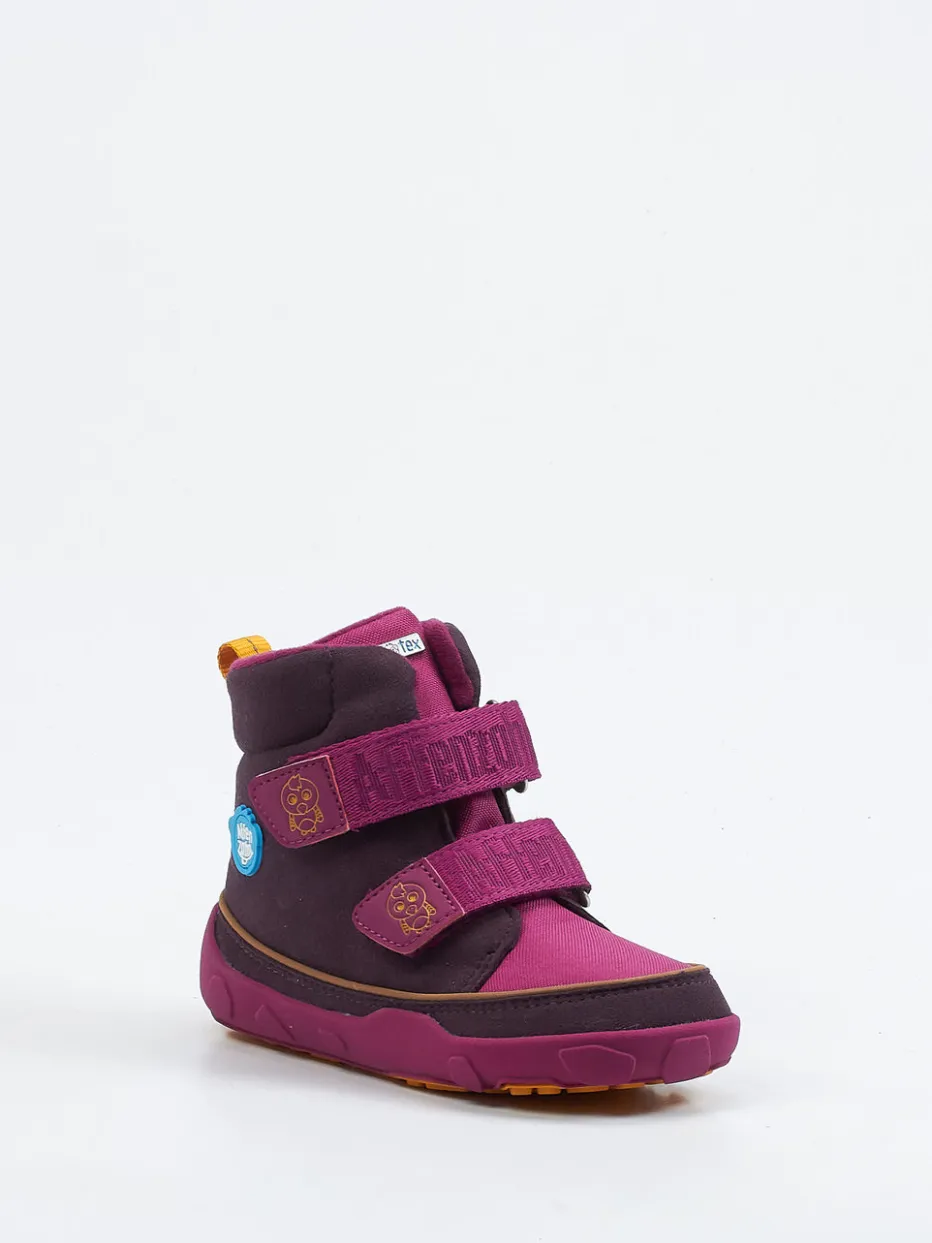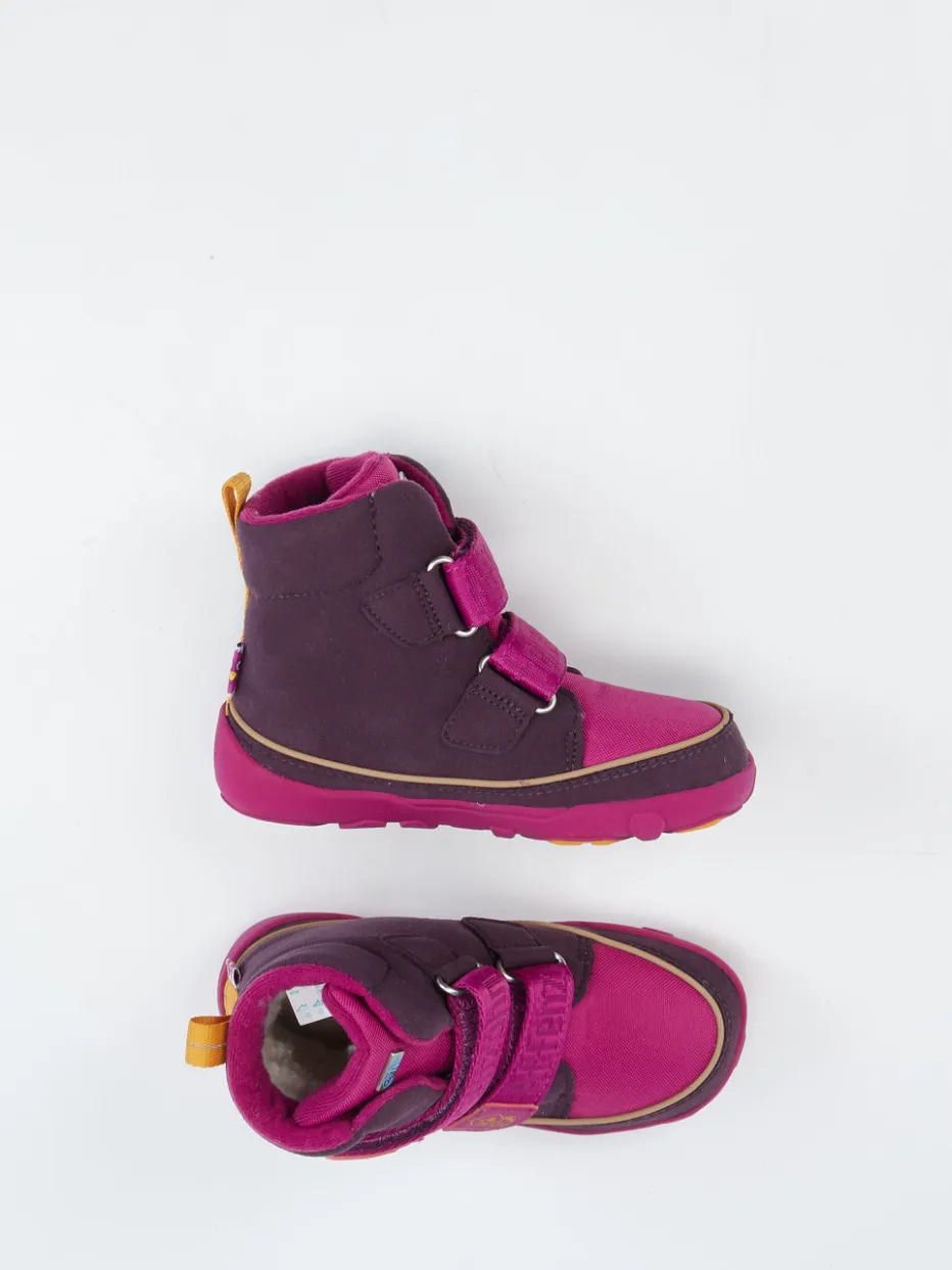 Ideal für Kindergartenwege und Winterabenteuer bieten diese knöchelhohen Boots aus veganem Stoff mit atmungsaktivem Mesh ein angenehmes Fußklima. Das intensive Beerenpink mit Akzenten in Senfgelb und Dunkellila sorgt für hohen Wiedererkennungswert. Praktische Details wie doppelte Klettverschlüsse mit Logo-Stickerei und die kontrastfarbene Zuglasche hinten erleichtern den Alltag. Die rutschfeste Gummisohle sorgt auch auf glattem Untergrund für Stabilität. Inspiriert von Streetwear-Elementen interpretiert der Schuh den Kidcore-Trend funktional neu.