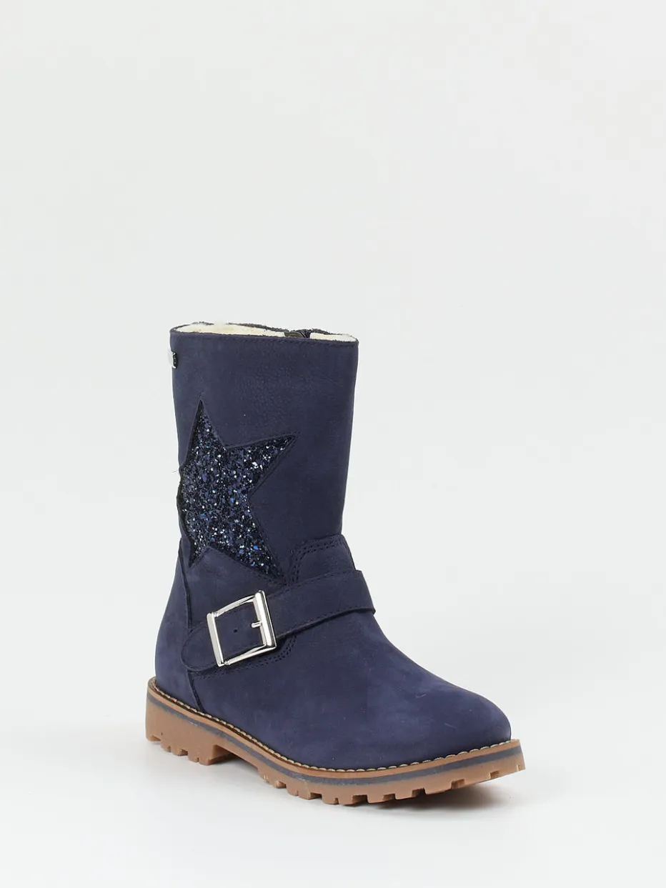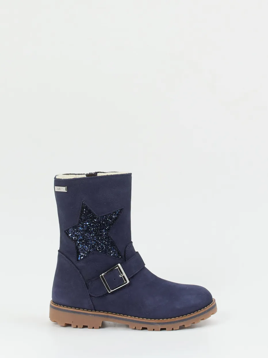 Robuster Kinderstiefel mit kuscheligem Innenfutter, rutschfester Profilsohle und glitzernder Sternen-Applikation – ideal für kalte Alltagstage mit Stilanspruch.