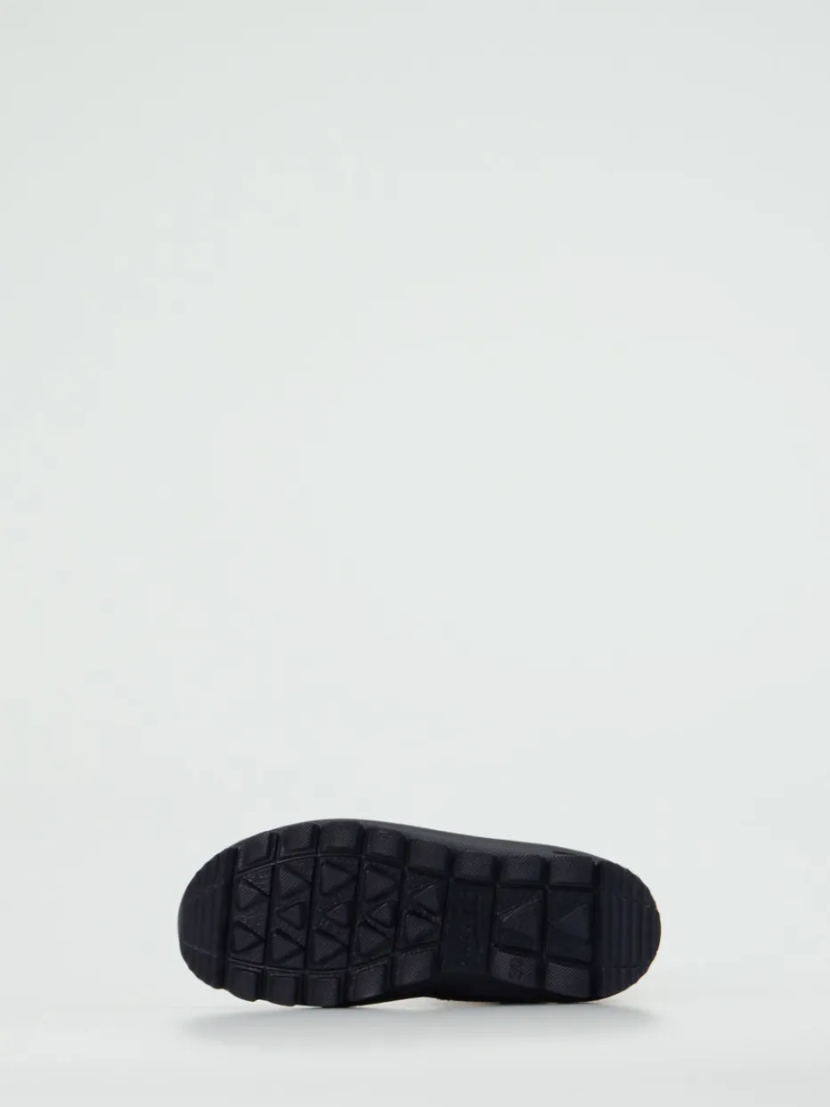Das Obermaterial aus dunkelblauem Veloursleder, ergänzt durch samtige Struktur und glitzernde Sternenmotive, bietet nicht nur einen kindgerechten Look, sondern auch wasserabweisenden Schutz. Das warme Innenfutter mit Kunstfell-Anmutung sorgt zusammen mit der robust profilierten PU-Sohle für Trittsicherheit und Komfort. Ein seitlicher Reißverschluss erleichtert das Anziehen besonders praktisch. Der klassische Schnitt wird von einem leicht schimmernden Finish und feinen Nahtdetails akzentuiert. Ideal zu Thermohose oder Winterjacke im grafischen Design.