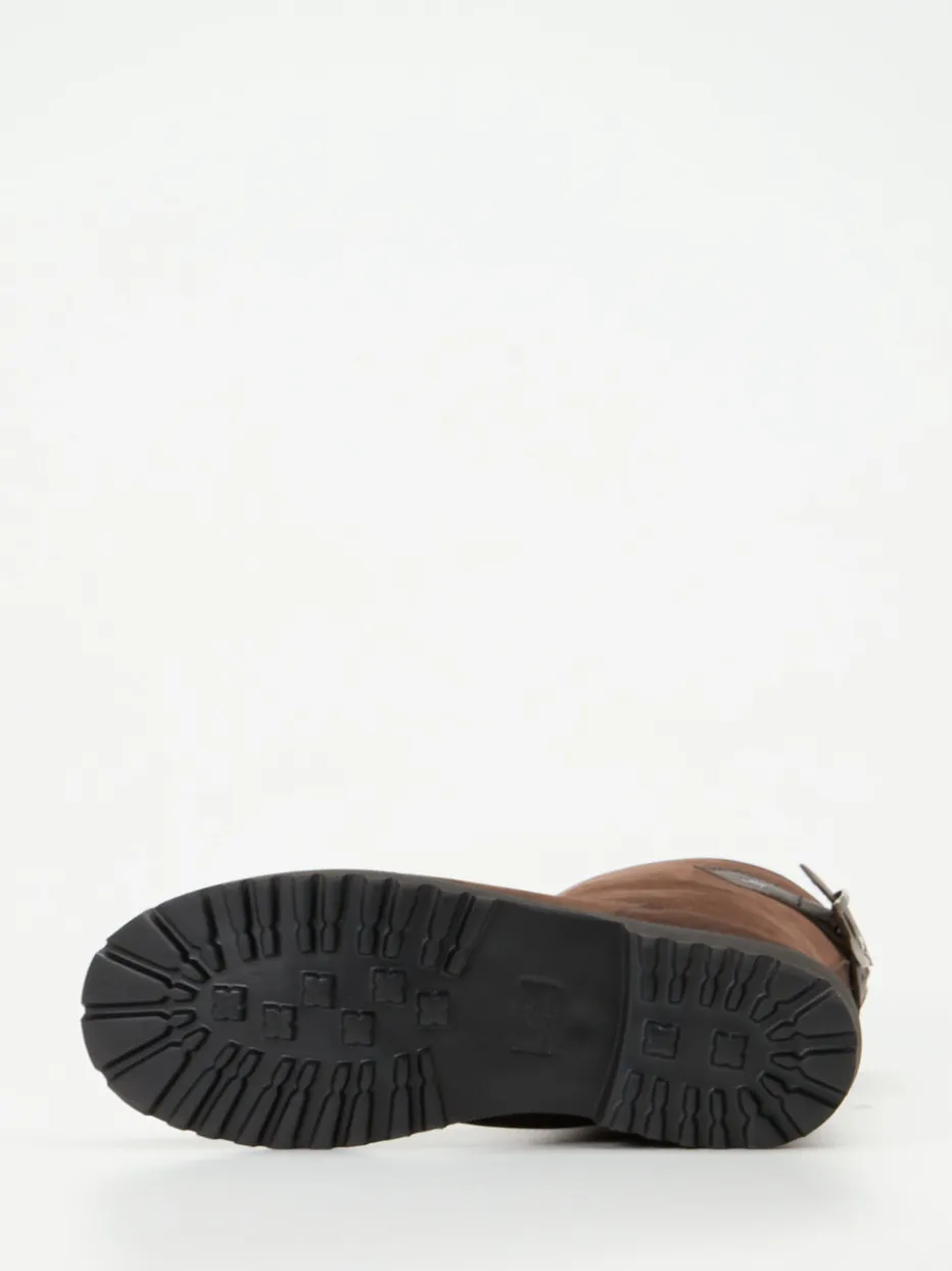 Ludwig Reiter präsentiert einen Winterstiefel, der Komfort und Charakter vereint. Für frostige Stadtspaziergänge oder den Weg ins Grüne konzipiert, überzeugt das Modell mit schokobraunem Veloursleder, das sich samtig-matt anfühlt. Das innenliegende, flauschige Lammfell sorgt für wärmenden Tragekomfort, die griffig profilierte Gummisohle bietet Stabilität auf rutschigem Untergrund. Die gerade, mittelhohe Silhouette mit tonigem Riemen und silberfarbener Schnalle verleiht dem Design einen dezenten Utility-Charakter. Die schlanke Farbgebung spiegelt aktuelle ‚Quiet Luxury‘-Trends wider. Ein robuster Winterbegleiter mit dem Anspruch klassischer Handwerkskunst.