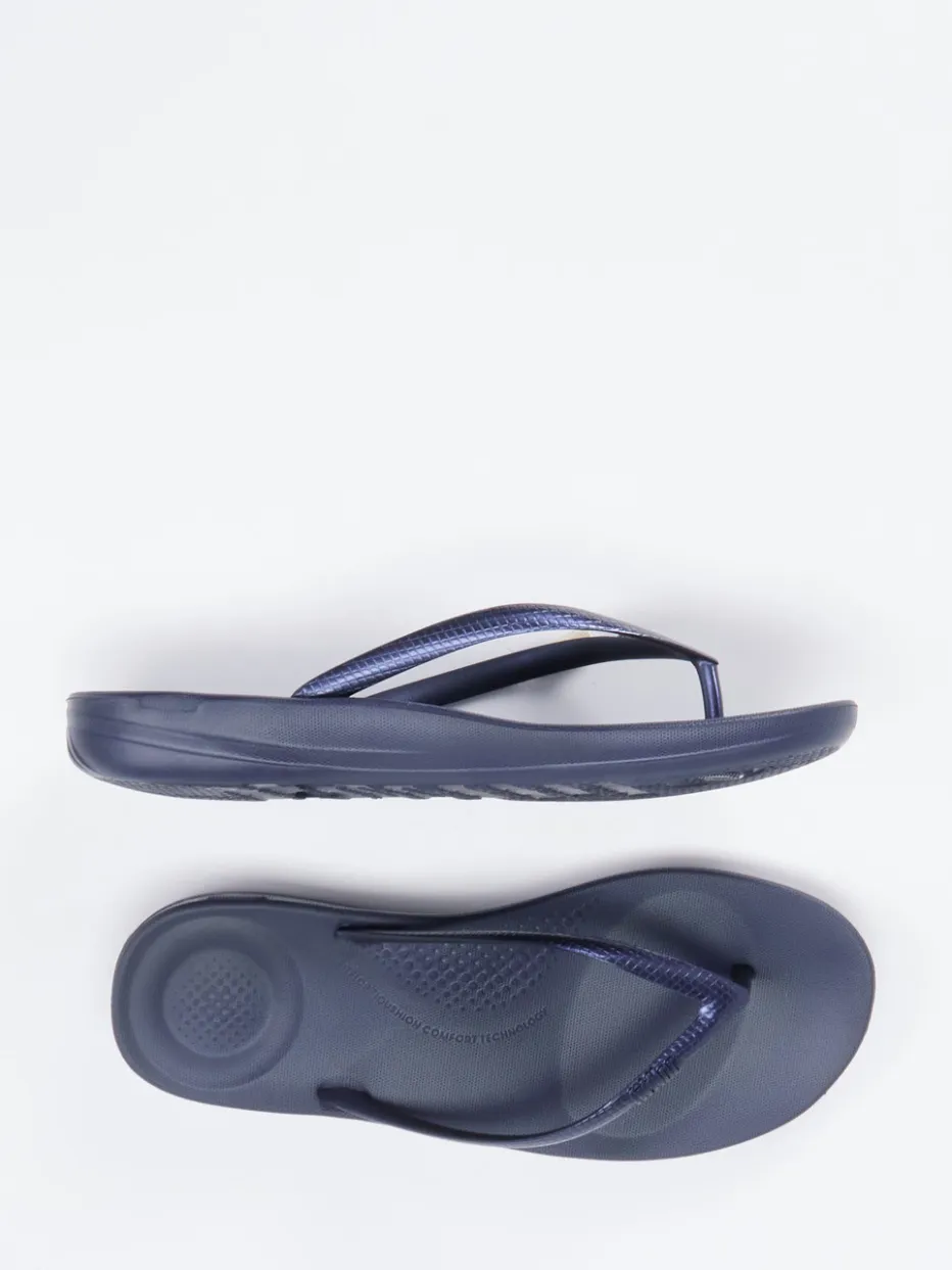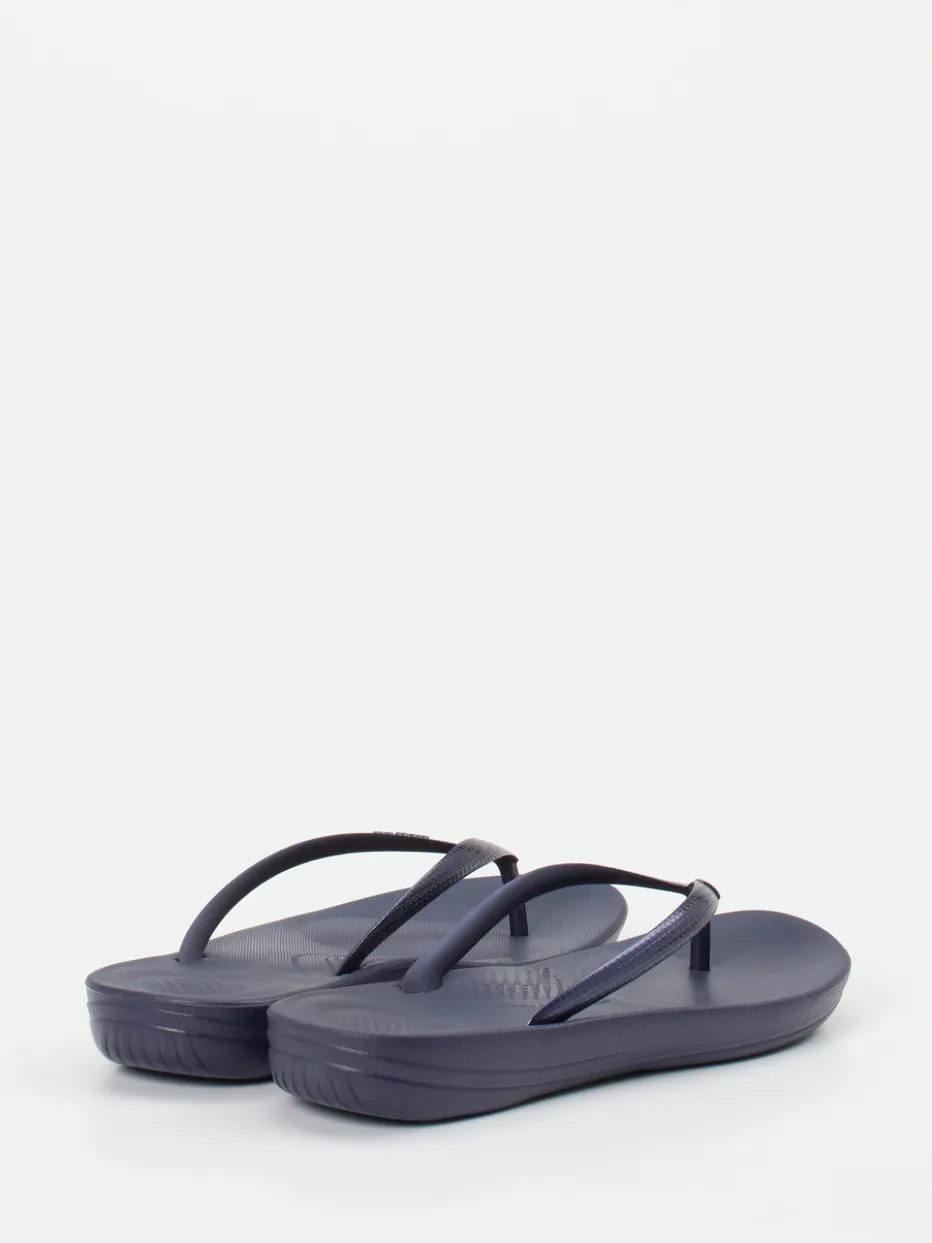 Für Strandtage und entspannte Schritte.FitFlop präsentiert mit dieser Sandale in Zehentrennerform ein unisex Modell für lässige Sommertage. Ideal für warme Tage am Wasser oder zuhause: Das synthetische Obermaterial mit mattierter Optik und leicht glänzendem Riemen in Prägeoptik bringt minimalistisches Design und Praktikabilität zusammen. In elegantem Dunkelblau gehalten, überzeugt die flache Silhouette mit ihrer ergonomisch geformten PU-Sohle. Die rutschhemmende Laufsohle bietet sicheren Halt auf nassem Untergrund. Inspiriert vom Streetwear-Trend „Comfort Core SS24“ trifft diese Sandale den Nerv urbaner Lässigkeit. Stilvoll kombinierbar mit Strand-Accessoires oder Casual-Wear. FitFlop steht für spürbaren Komfort bei zeitgemäßem Design.