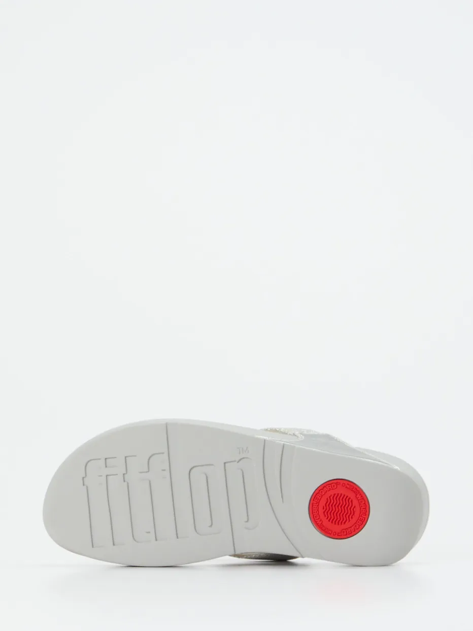 Die FitFlop Zehentrenner vereinen dezente Glitzeroptik mit einer ergonomisch geformten Plateausohle für spürbaren Sommerkomfort. Ein Modell, das Trendbewusstsein mit Funktion verbindet.