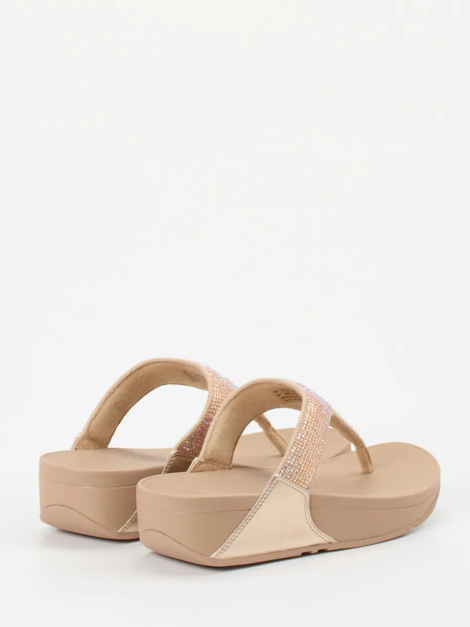 Glamour trifft Komfort für sommerliche Tage.FitFlop bringt mit diesen Damen-Zehentrennern eine stilvolle Variante für warme Tage. Ideal für entspannte City-Promenaden oder Urlaubsabende bietet dieses Slip-On-Modell mit glänzendem Textil-Strass-Mix in zartem Beigebraun und schimmernden Rosé-Details ein komfortables Laufgefühl. Die ergonomische Sohle mit leichter Keilhöhe, das Mikrofaser-Innenfutter und der modische Satin-Look sorgen für Tragekomfort und ein gepflegtes Erscheinungsbild. Das strassbesetzte Design greift den Metallic-Trend SS24 auf und verleiht einen Hauch von „Quiet Luxury“. Optimal kombinierbar mit fließenden Sommerkleidern oder hellen Leinen-Outfits. FitFlop steht für gehobenen Gehkomfort mit dezenter Eleganz.