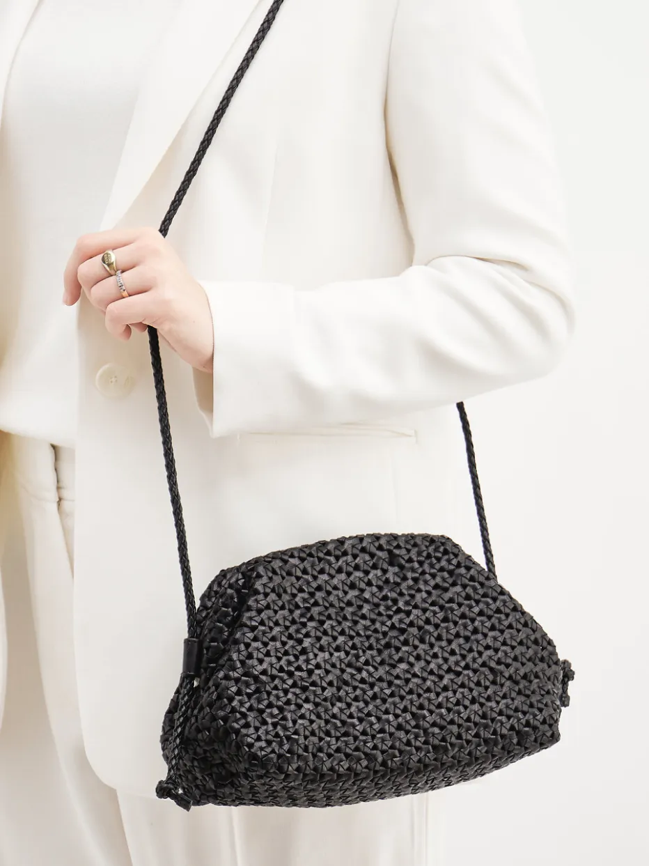 Fein geflochtenes Leder und eine strukturierte Form verleihen dieser Tasche von Pons Quintana eine elegante Anmutung mit modernem Minimalismus.