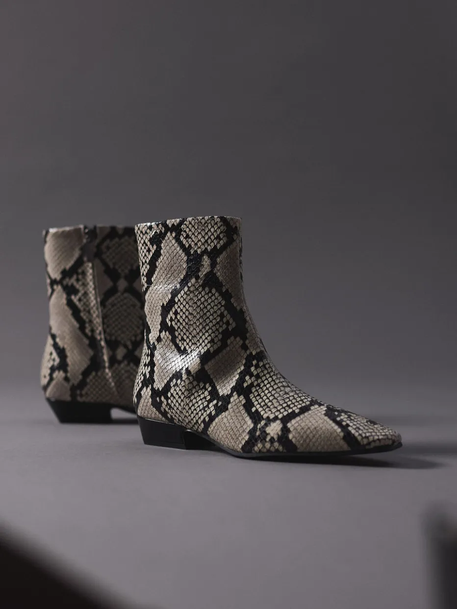 Die markante Schlangenprägung in angesagtem Beigeton verleiht dieser Stiefelette aus geprägtem Leder von Konstantin Starke eine auffallende Präsenz mit modernem Western-Flair.