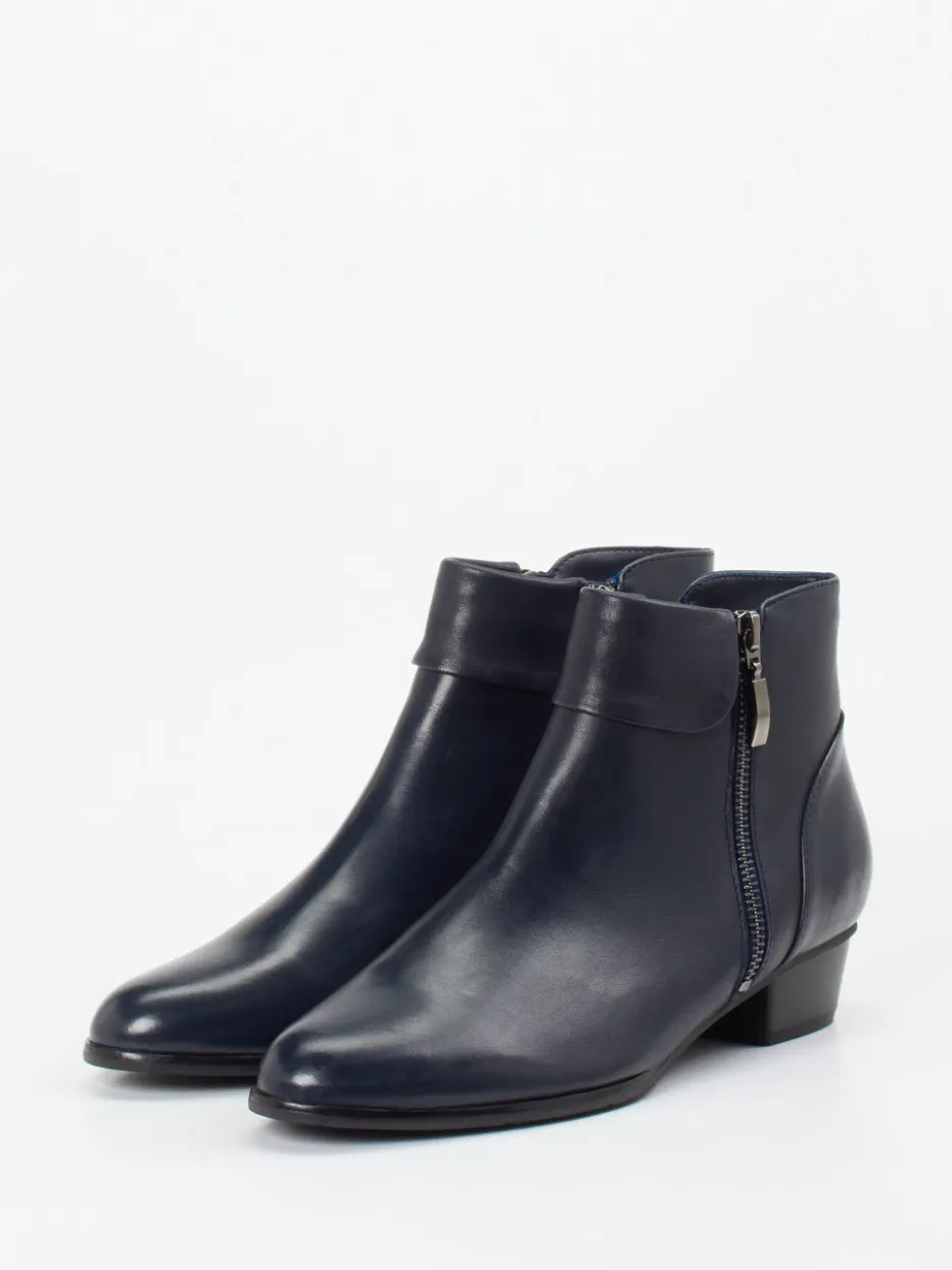 Stilvoll durch Büro und Alltag.Ralph Harrison präsentiert mit diesen Ankle Boots eine elegante Damen-Stiefelette für Herbst und Winter. Das dunkelblaue Lammleder punktet mit glatter, leicht glänzender Oberfläche und liegt angenehm am Fuß. Der klassische, taillierte Schnitt trifft auf praktische Details wie seitliche Reißverschlüsse, deren silberfarbene Akzente einen stilvollen Kontrast setzen. Ein flacher Blockabsatz sorgt für optimalen Laufkomfort, während das graue Fleecefutter für angenehme Wärme an kühlen Tagen sorgt. Ob zum feinen Wollmantel oder zur klassischen Stoffhose: Der Look bleibt stets zeitgemäß. Ein souveräner Auftritt mit der Qualität und Eleganz von Ralph Harrison.