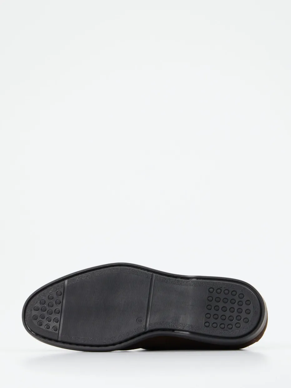 Wohlgefühl beginnt beim Fuß.Quarvif präsentiert mit diesem Herren-Ankle Slipper ein Modell, das lässige Eleganz und funktionalen Tragekomfort vereint. Für entspannte Stunden daheim oder warme Schritte durch kühlere Jahreszeiten sorgt das schokoladenbraune Veloursleder, das samtig angeschliffen und fein verarbeitet ist. Innen verwöhnt weiches Lammfell mit angenehmer Wärme. Der klassische, runde Schnitt reicht bis zum Knöchel und verzichtet bewusst auf Verschluss – unterstützt durch verdeckte Elasteinsätze für müheloses Anziehen. Die durchgehende, profilierte Gummisohle verleiht solide Trittsicherheit, während Ton-in-Ton-Nähte und eine klar reduzierte Form den minimalistischen Charakter unterstreichen. Gut kombinierbar mit loungetauglichen Outfits in gedeckten Tönen. Ein zeitlos komfortabler Begleiter mit klarem Stilfokus von Quarvif.