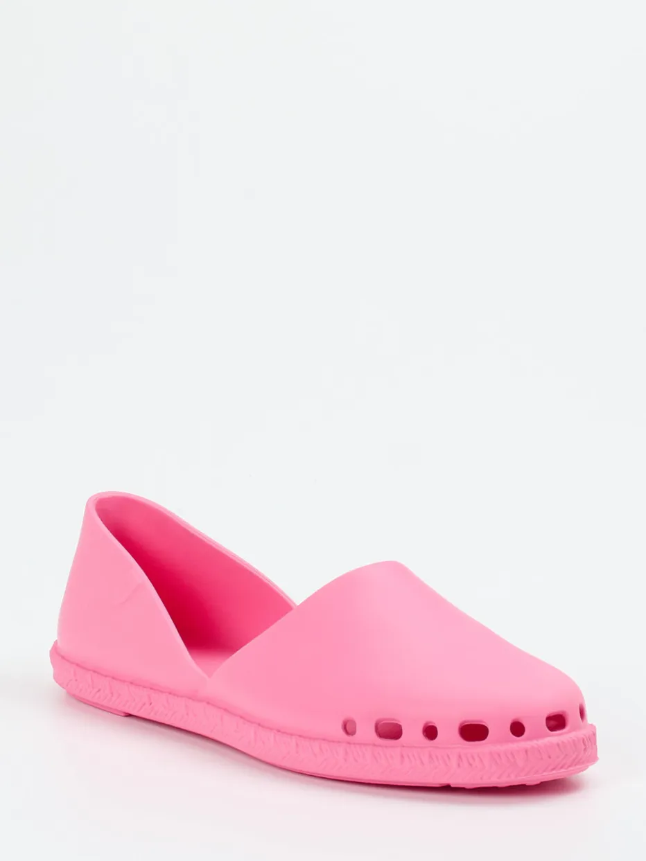 Trendfarbe für heiße Tage.Verbenas bietet mit dieser Badepantolette ein unbeschwertes Modell innerhalb der Kategorie Badeschuhe. Für entspannte Strandtage oder spontane City-Walks gefertigt, präsentiert sich der Schuh aus hautfreundlichem Synthetikmaterial mit matter Oberfläche besonders leicht und pflegeleicht. Die pinke Farbgebung sorgt für einen frischen Akzent, während Cut-outs und Perforationen funktionale Belüftung bieten. Offene Ferse und strukturierte Laufsohle unterstreichen den Freizeit-Charakter. Inspiriert von Streetwear und dem Y2K-Revival, funktioniert das Modell bestens zu Bikinis, Shorts oder Oversized-Shirts. Ein schnelltrocknender Begleiter mit Stil – für Trendbewusstsein in jeder Sommersituation.