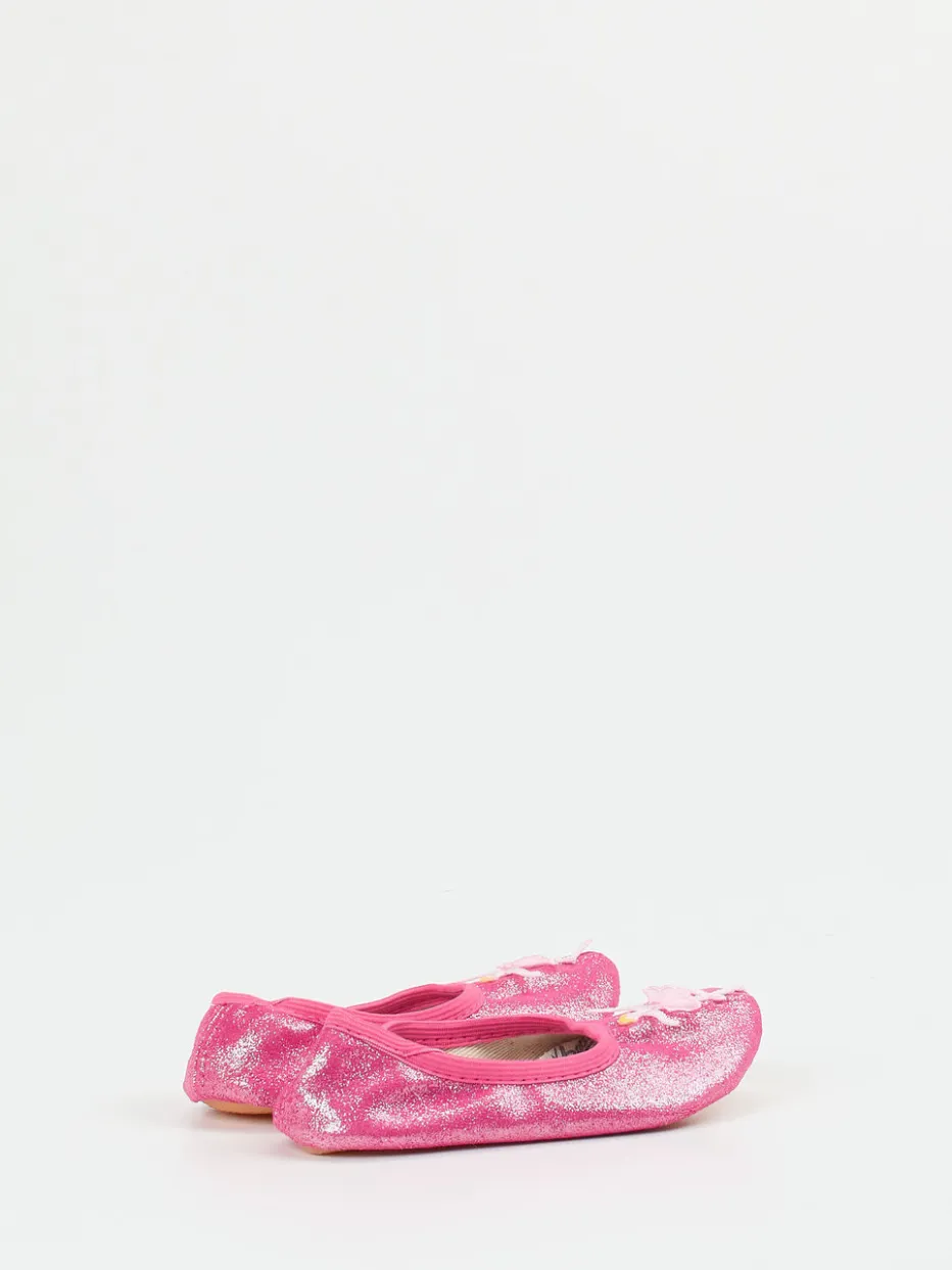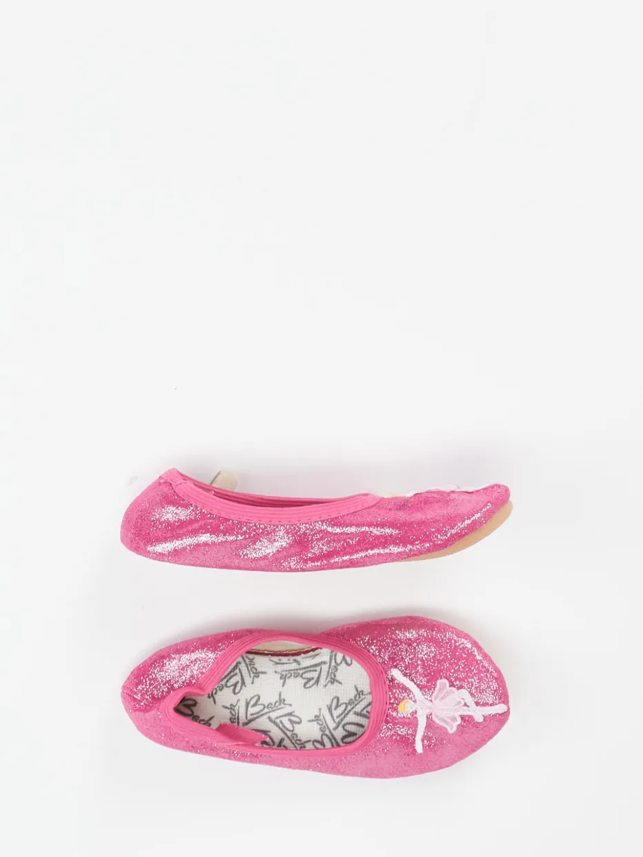 Glitzerträume für kleine Tänzerinnen.Beck präsentiert bezaubernde Kinder-Hausschuhe im klassischen Ballerina-Stil. Ideal für entspannte Stunden zu Hause oder den fantasievollen Ballett-Nachmittag im Kinderzimmer: Der leichte Schlupfschuh aus Textil überzeugt mit einer samtig glitzernden Oberfläche in kräftigem Pink. Der elastische Einstieg erleichtert das An- und Ausziehen und sorgt für komfortablen Halt. Eine applizierte Mini-Tänzerin und ein klassisch runder Schnitt unterstreichen den verspielten Look. Die rutschfeste Gummisohle ermöglicht sicheres Herumtollen auf glatten Böden. Kombinierbar zu Leggings oder Ballettoutfit – ein echter Hingucker für kleine Ballettfans. Markentypisch bequem mit fantasievollem Design für aktive Kinderfüße.