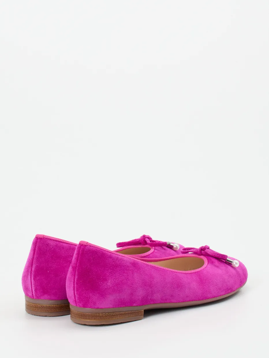 Feminin trifft Trendfarbe.Ara präsentiert einen klassischen Ballerina für Damen, gefertigt aus luxuriösem Veloursleder in aktueller Pinknuance. Ideal für Alltag und Ausgehen überzeugt das Modell mit bequemem HighSoft-Fußbett und flacher Silhouette. Die samtig matte Oberfläche wird von einem Ton-in-Ton eingefassten Textilband umspielt, das in eine Zierschleife mit silbernen Metallenden und Perlen mündet. Die runde Form und schlupffreundliche Weite G erhöhen den Tragekomfort. Mit seiner romantisch-minimalistischen Optik integraler Bestandteil des „Barbiecore“-Trends. Ein stilvoller Akzent mit femininer Note aus dem Hause Ara.