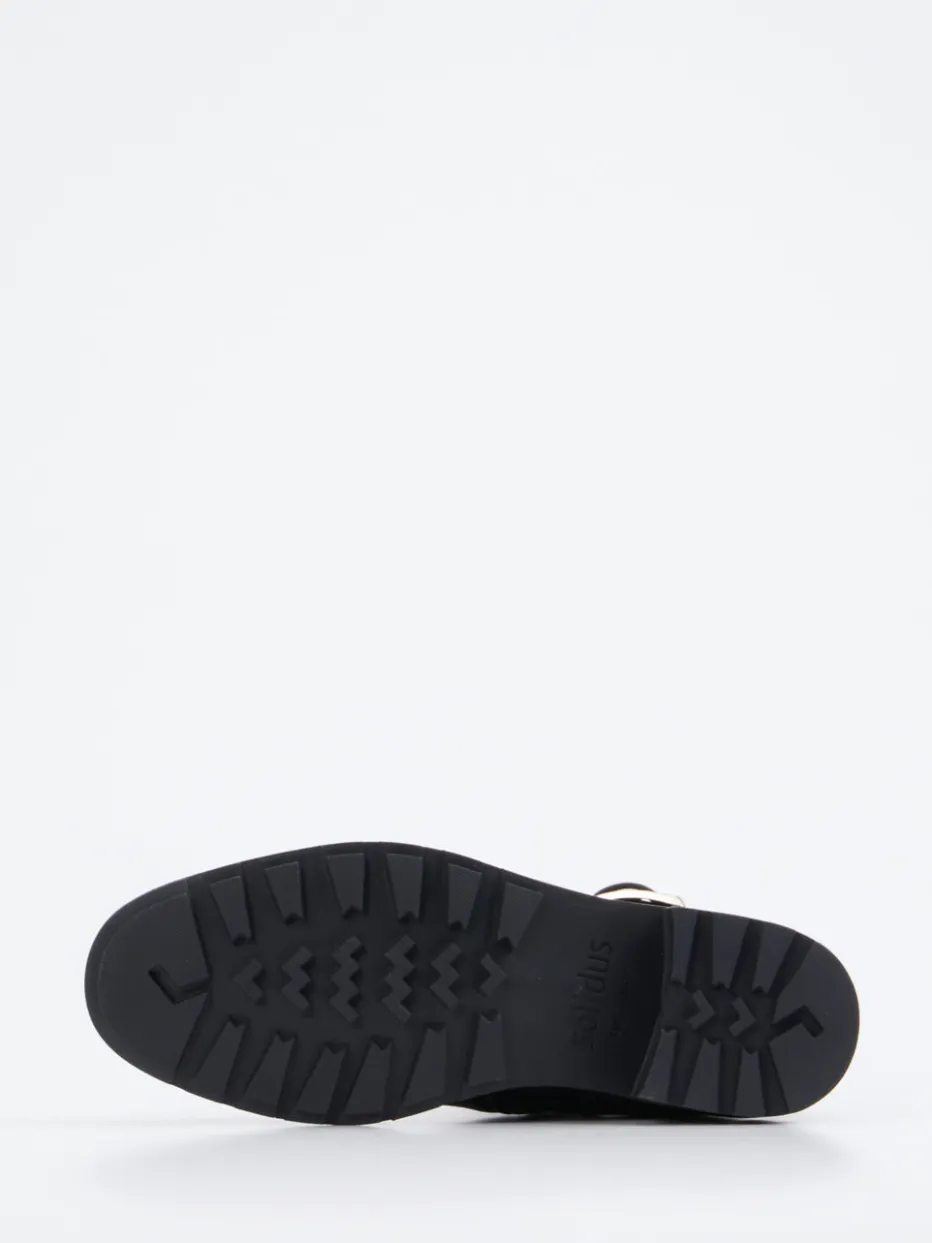 Robustes Glattleder, silberfarbene Schnallen und eine markant profilierte Gummisohle machen diese Biker-Stiefelette von Solidus zu einem stilsicheren Begleiter für urban inspirierte Looks.