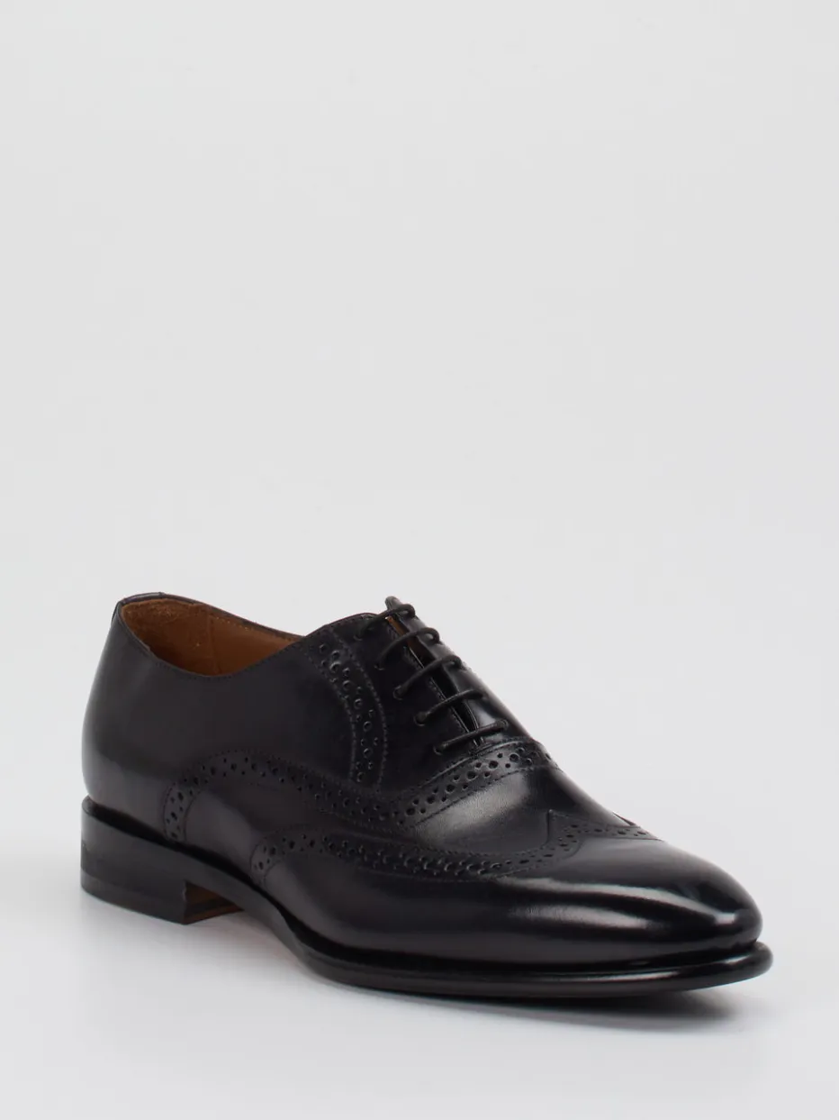 Dieser Brogue Oxford überzeugt mit tiefschwarzem Glanz, traditioneller Lochung und handwerklicher Qualität – ein Klassiker der Herrenschuhmode auf höchstem Niveau.