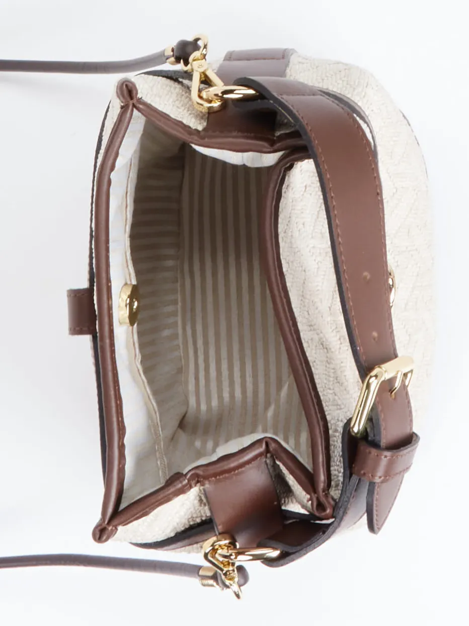 Die strukturierte Viamailbag überzeugt mit geflochtenem Gewebe, hochwertigen Lederdetails und goldfarbener Hardware – ein durchdachtes Design zwischen Retro-Charme und moderner Klarheit.
