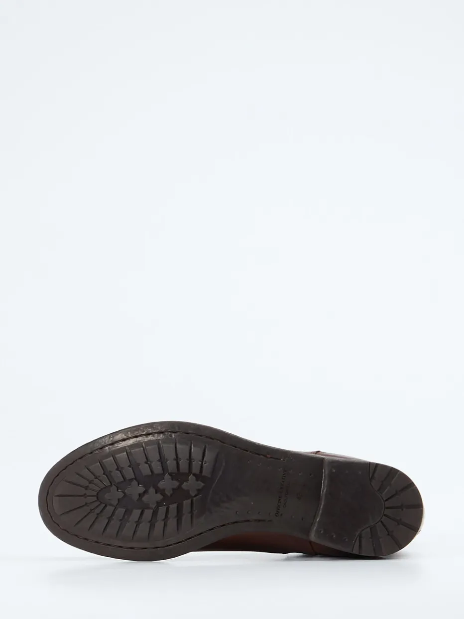 Understatement trifft auf italienisches Feingefühl.Officine Creative präsentiert klassische Herren-Chelsea Boots in dunkelbraunem, glänzendem Büffelleder. Perfekt für Alltag und Büro, überzeugt dieses Modell durch seine minimalistische Silhouette und tonale Elastikeinsätze für schnelles An- und Ausziehen. Das fein verarbeitete Leder zeigt einen geschmeidigen Glanz, ergänzt durch eine praktische Zuglasche am Schaft. Die profilierte Gummisohle ermöglicht sicheren Tritt – urban oder im Landhausstil. Inspiriert von stilistischen Strömungen wie Quiet Luxury und Classic Revival, eignet sich der Look zu edlem Wollmantel oder dunklem Denim. Handwerkskunst in Form und Funktion – konsequent markenpräzise umgesetzt.
