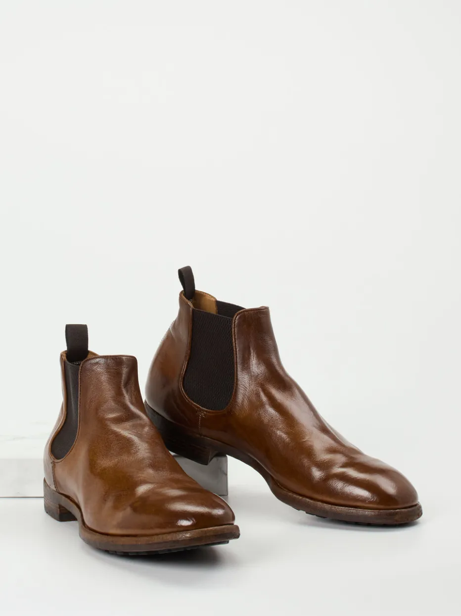 Geradlinige Eleganz im Herbstlook.Die Premium-Marke Officine Creative präsentiert hier klassische Herren-Chelsea-Boots. Ob zu Wollhose im Büro oder Denim in der Freizeit – das mittelbraune, glänzende Büffelleder passt ideal in gepflegte Alltagskonzepte. Seitliche Elastikeinsätze, eine rückseitige Zuglasche sowie die markant profilierte Gummisohle sorgen für Komfort und Funktionalität. Der knöchelhohe Schnitt, das tonale Nahtbild und die leicht spitz zulaufende Silhouette unterstreichen die dezent elegante Anmutung. Modisch orientiert sich das Modell an „Quiet Luxury“ und urbanem Heritage-Style. Verlässlicher Tragekomfort trifft auf handwerklich inspiriertes Designverständnis.