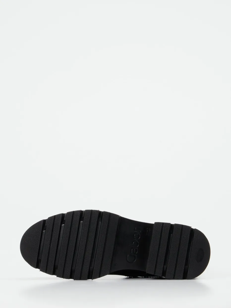 Minimalistisches Design trifft Funktionalität.Die Marke Gabor präsentiert klassische Chelsea Boots für Damen. Ideal für herbstliche Pendelwege oder einen stilvollen Büroalltag: Das schwarze Glattleder dieser Stiefeletten fühlt sich dank Kalbslederqualität geschmeidig an und kommt mit matter Oberfläche und Ton-in-Ton-Nähten edel zur Geltung. Seitliche Elastikeinsätze und eine dezent integrierte Zuglasche sorgen für schnelles An- und Ausziehen. Innen schützt eine warme Textilfaser vor kühlen Temperaturen, während die markant profilierte Gummisohle sicheren Halt bietet. Die 4 cm hohe Sohle passt perfekt zum aktuellen Chunky-Trend. Ein zeitloser Stilpartner mit urbanem Anspruch und zuverlässigem Komfort.