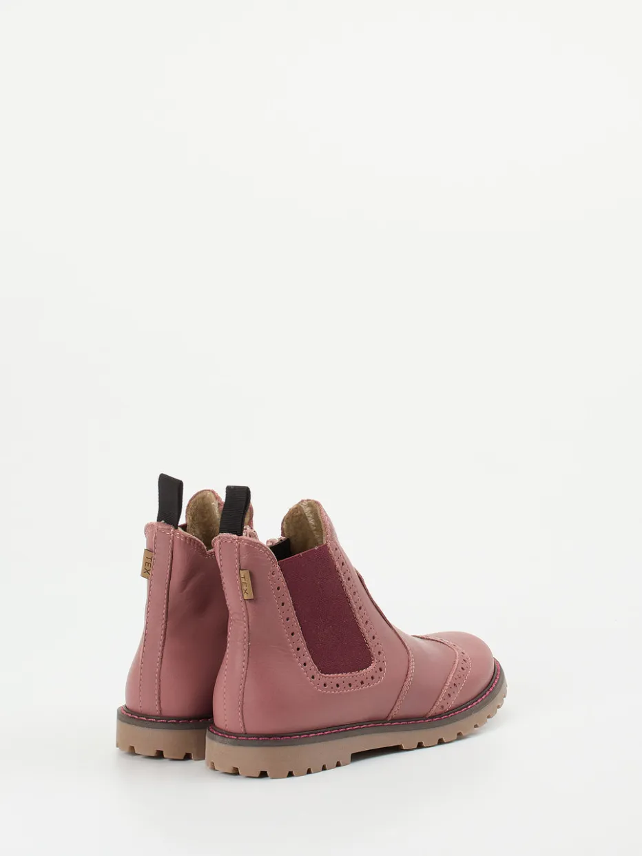 Stilvoll durch den Herbst.Die Marke Ralph Harrison Classic präsentiert klassische Chelsea Boots für Kinder. Perfekt für Schulwege und Spielplatzabenteuer: Das wasser- und winddichte Kalbleder in Altrosa wirkt durch die matte Oberfläche besonders edel und wird stilsicher durch Ziernähte mit Brogue-Optik ergänzt. Dank elastischer Einsätze, Reißverschluss und praktischer Zuglasche gelingt das An- und Ausziehen im Handumdrehen. Das warme Fleecefutter sorgt für Behaglichkeit an kühlen Tagen, während die breite Gummisohle mit Profil sicheren Grip bietet. Heritage trifft hier auf kindgerechte Lässigkeit – ideal für einen modernen Casual-Look mit Strickmütze und Jacke. Gekonnt verarbeitet und funktional – ein stilbewusster Begleiter mit Komfort.