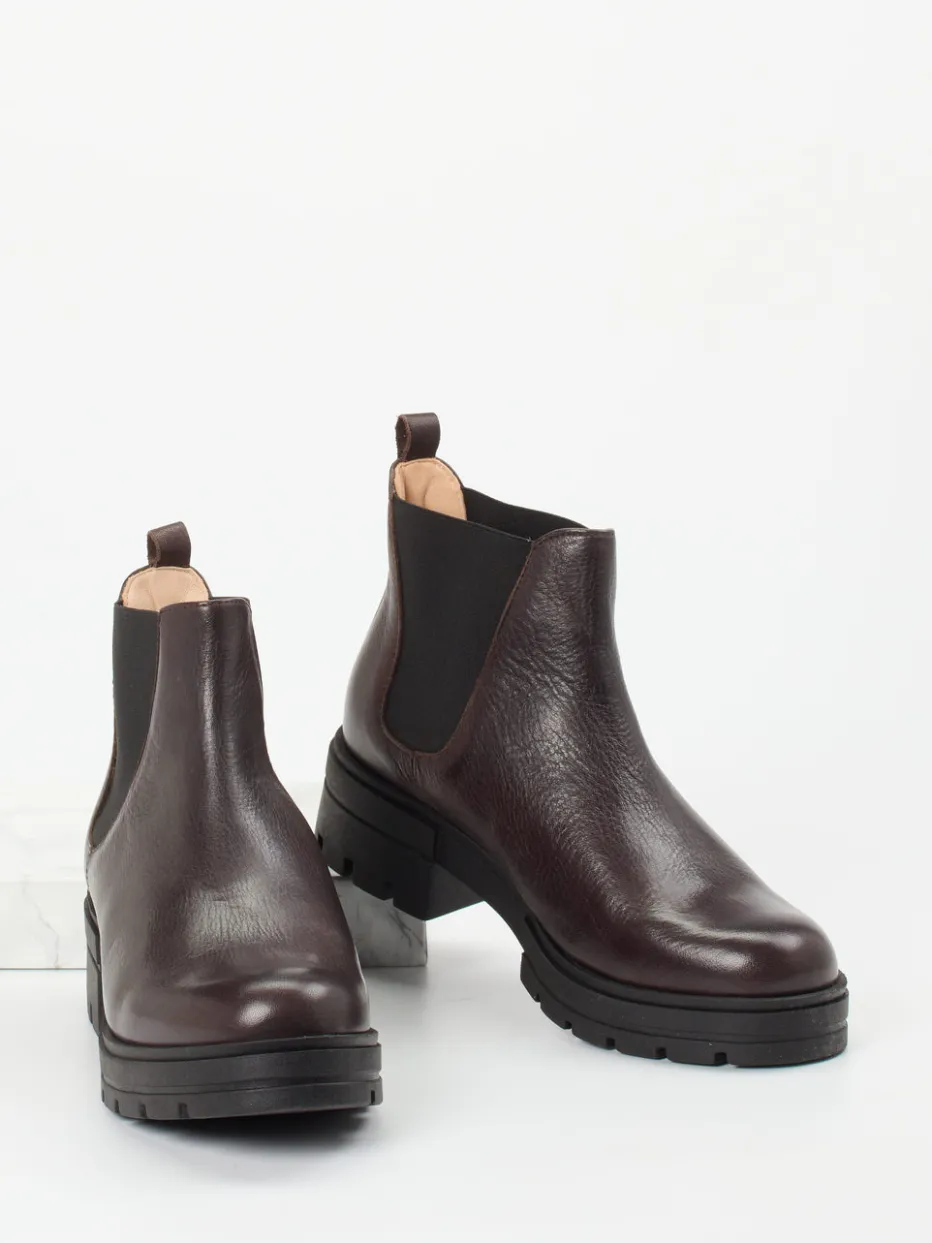 Ob beim Stadtbummel oder im Büroalltag – das Modell überzeugt durch genarbtes Kalbleder in tiefem Dunkelbraun und eine profilierte Gummisohle mit leichter Absatzhöhe von 3 cm. Elastikeinsätze und die praktische Schlupfform sorgen für Komfort und ein minimalistisches Gesamtbild. Die rund zulaufende, knöchelhohe Silhouette passt zu urbanen Casual-Looks ebenso wie zu klassischen Outfits. Trend-Elemente wie die massive Sohle und Ton-in-Ton-Details greifen aktuelle Stilrichtungen wie Quiet Luxury auf.