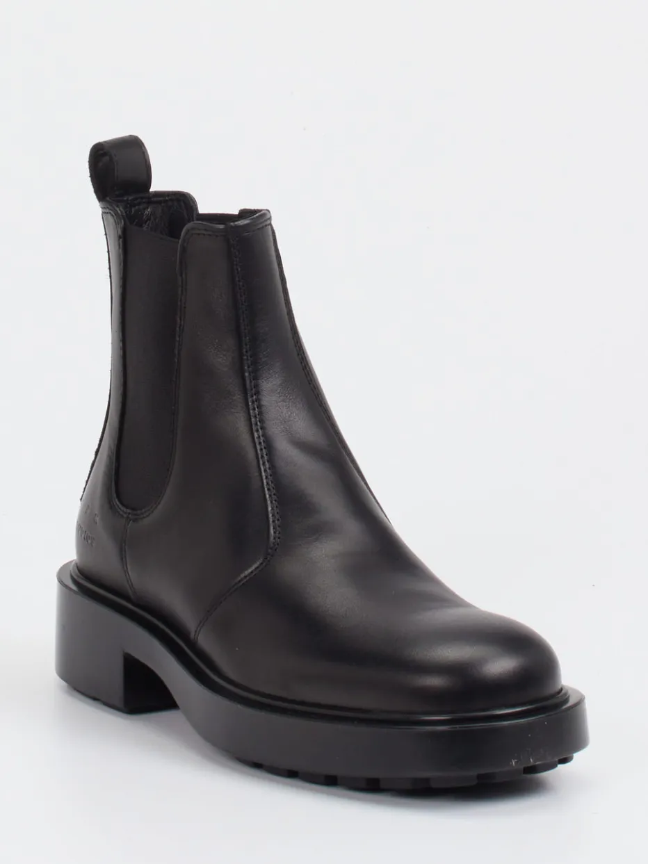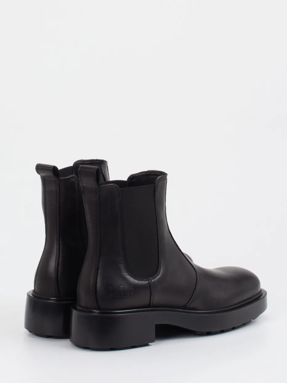Minimalismus trifft urbanen Charakter.Copenhagen setzt mit diesen Damen-Chelsea Boots auf klare Silhouetten und kompromisslose Qualität. Schwarzes Kalbleder mit matter Oberfläche und tonigen Nähten bildet die Basis eines Designs, das schlichte Eleganz mit griffigem Profil vereint. Die knöchelhohe Form, elastische Einsätze und praktische Zuglaschen ermöglichen komfortables Hineinschlüpfen. Der angesagte „Heavy Sole“-Look bringt modische Präsenz im Alltag wie im Büro. Mit geprägtem Logo an der Ferse bleibt der Stil bewusst zurückhaltend. Perfekt kombinierbar zu Wollmänteln oder klar geschnittenen Hosen-Looks. Copenhagen bietet mit diesem Modell zeitlosen Stil in kompromissloser Qualität.