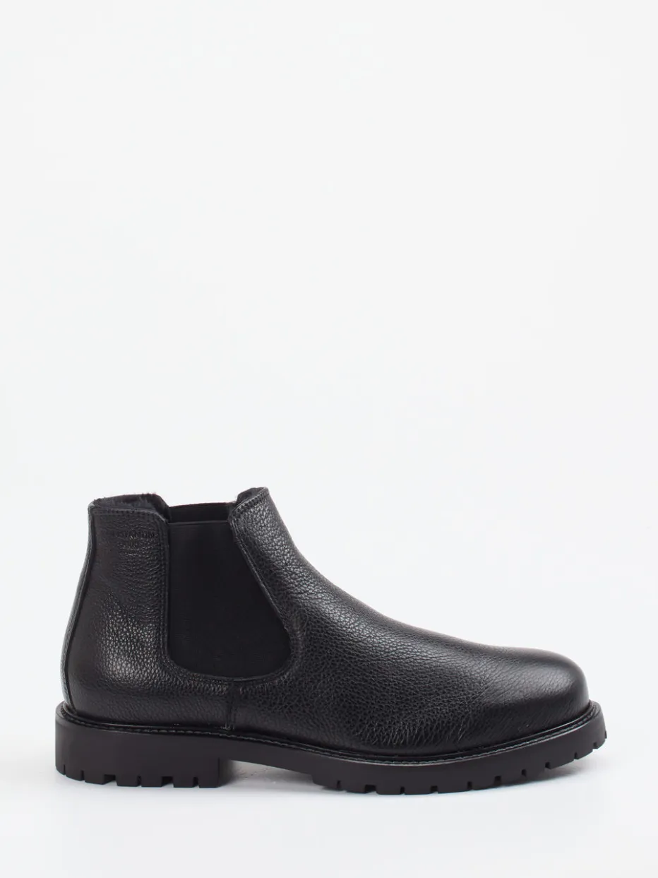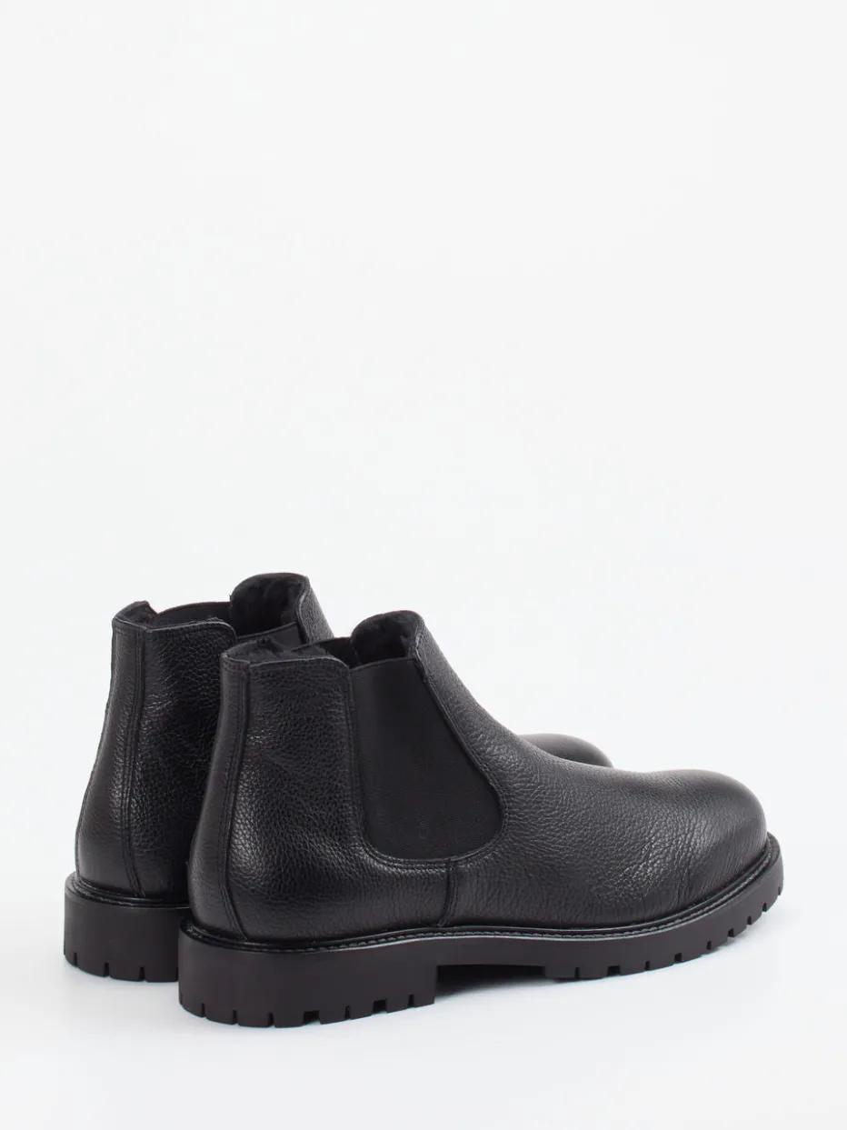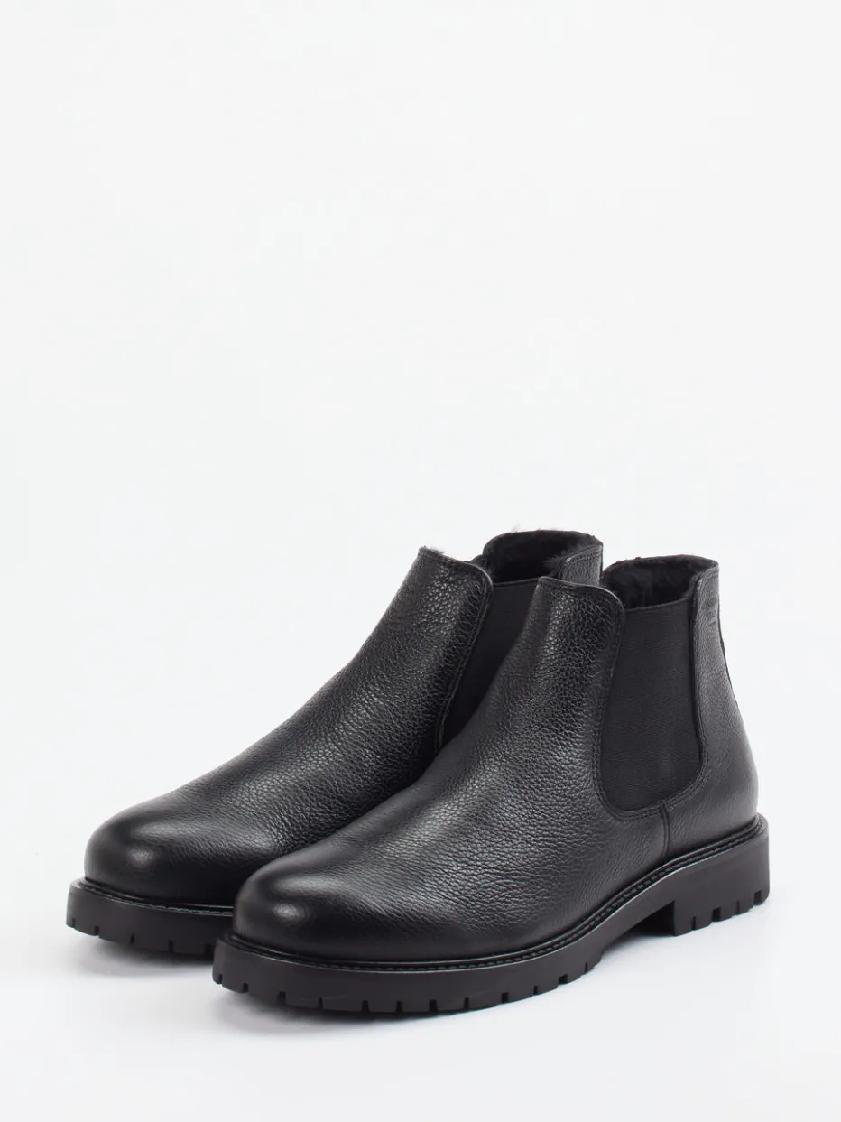 Stilvoll durch Herbst und Winter.Konstantin Starke präsentiert klassische Chelsea Boots für Herren. Ideal für den urbanen Alltag: Das schwarze Kalbleder ist charaktervoll genarbt und zeigt eine matte Oberfläche mit Ton-in-Ton-Nähten. Der knöchelhohe Schnitt mit seitlichen Elastikeinsätzen und Zuglasche verspricht bequemes Anziehen. Eine profilierte Gummisohle sorgt für Trittsicherheit bei herbstlichem Wetter, während das Lammfellfutter wohlige Wärme spendet. Die klare Form mit minimalistischer Ausstrahlung lässt sich mühelos zum Wollmantel oder zur dunklen Jeans kombinieren. Ein funktional-eleganter Begleiter im Zeichen von „Quiet Luxury“.