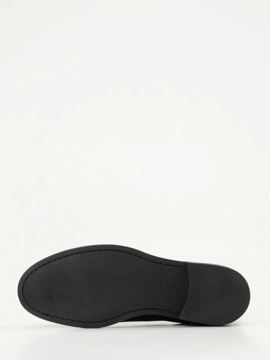 Stilsicher mit Understatement.Die Herren-Chelsea Boots von Konstantin Starke präsentieren sich in einem tiefschwarzen Kalbleder mit edlem Glanz. Perfekt für den Weg ins Büro oder einen stilvollen Stadtbummel. Das hochwertig verarbeitete Glattleder, ergänzt um dunkelblaue Elastikeinsätze, verbindet klassische Silhouette mit modernem Minimalismus. Eine leicht abgerundete Spitze, Zuglasche am Schaft sowie die fein genähte Gummisohle unterstreichen die klare Linienführung. Die Farbakzente greifen britische Heritage-Einflüsse auf und fügen sich in aktuelle Quiet-Luxury-Trends ein. Besonders gut kombinierbar mit Wollmantel und Ledergürtel. Zeitlose Ästhetik trifft auf komfortable Verarbeitung – Konstantin Starke überzeugt mit souveränem Stilgefühl.