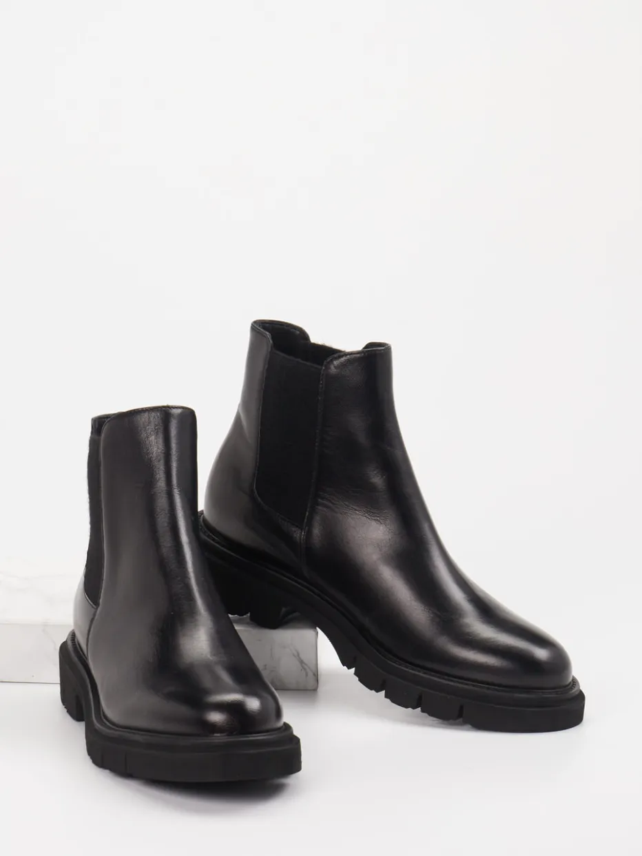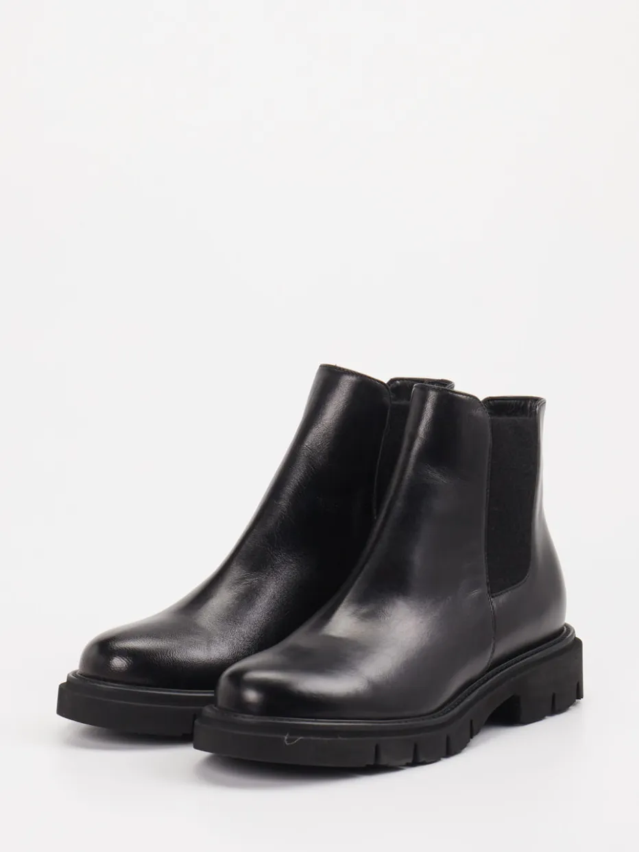 Ideal bei herbstlichem Wetter und urbanen Alltagswegen bietet das Modell durch sein hochwertiges Kalbleder eine elegante, glatte Haptik mit leichtem Glanz. Die klassische knöchelhohe Form in Schwarz wird durch Ton-in-Ton-Elastikeinsätze sowie eine markant profilierte Leichtzellsohle ergänzt. Die bequeme Schlupfform und das weiche Ziegenlederfutter sorgen für hohen Komfort. Stilistisch bewegt sich der Look zwischen minimalistischer Ästhetik und angesagtem Streetwear-Trend. Besonders gut kombinierbar mit strukturierter Outerwear und dezentem Accessoire-Styling.