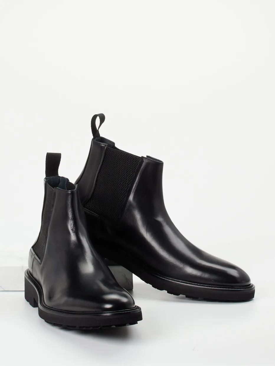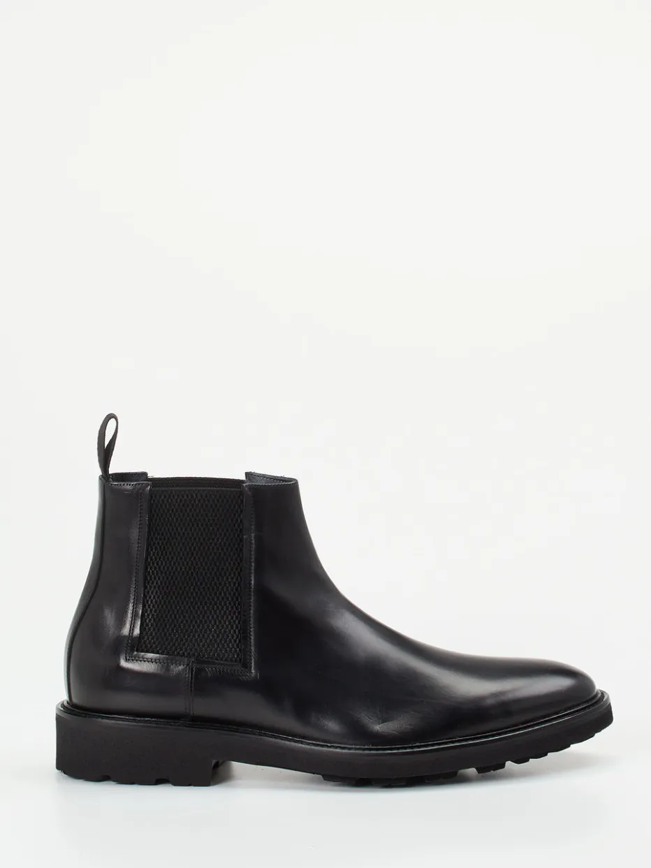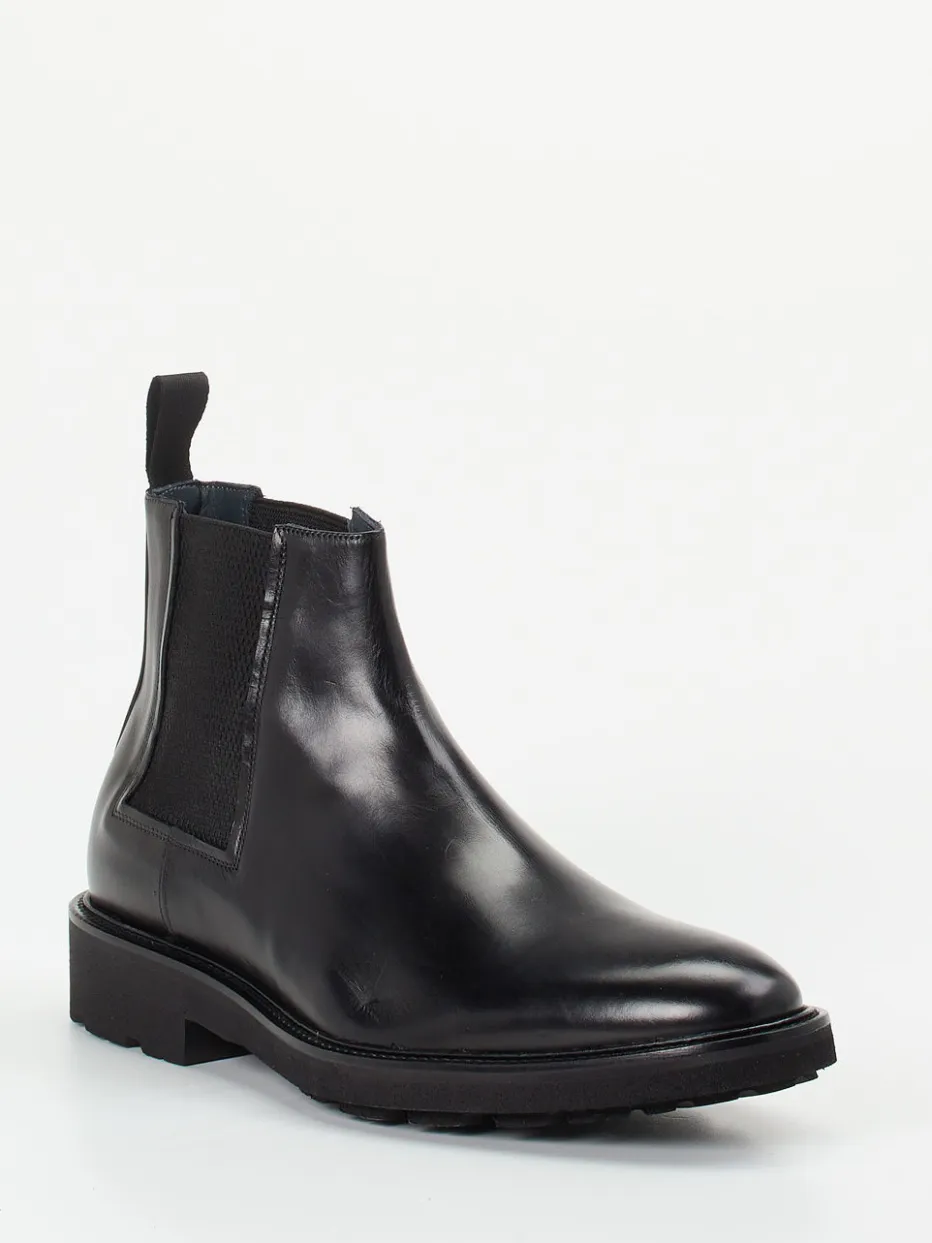 Die Ralph Harrison Edition interpretiert Herren-Chelsea-Boots mit einer klaren Formsprache neu. Die klassische Schlupfform aus hochwertigem, glänzendem Kalbleder in tiefem Schwarz passt ideal zu urbanen Looks mit Understatement.