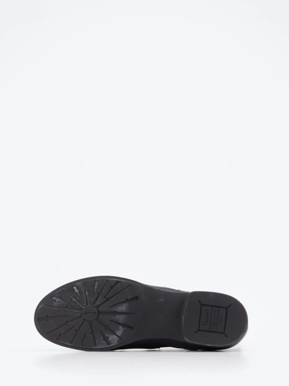 Klassisch stilvoll für jeden Anlass.Die Marke Think zeigt mit diesen Chelsea Boots eine konsequent reduzierte Interpretation ihrer Damen-Stiefeletten. Schwarzes Kalbleder mit matter Oberfläche trifft auf tonale Elastikeinsätze und dezente Zuglaschen, wodurch eine elegante, knöchelhohe Silhouette entsteht. Der praktische Schlupfeinstieg und das lederbezogene, herausnehmbare Fußbett bieten alltagstauglichen Komfort – unterstützt von einer griffigen Gummisohle mit leichtem 2 cm Blockabsatz. Design-Highlights wie fein gesetzte Ton-in-Ton-Nähte und eine subtile Markenprägung fügen sich harmonisch in den „Quiet Luxury“-Trend ein. Ein vielseitiger Klassiker mit ausgeprägtem Gespür für Understatement und Qualität.