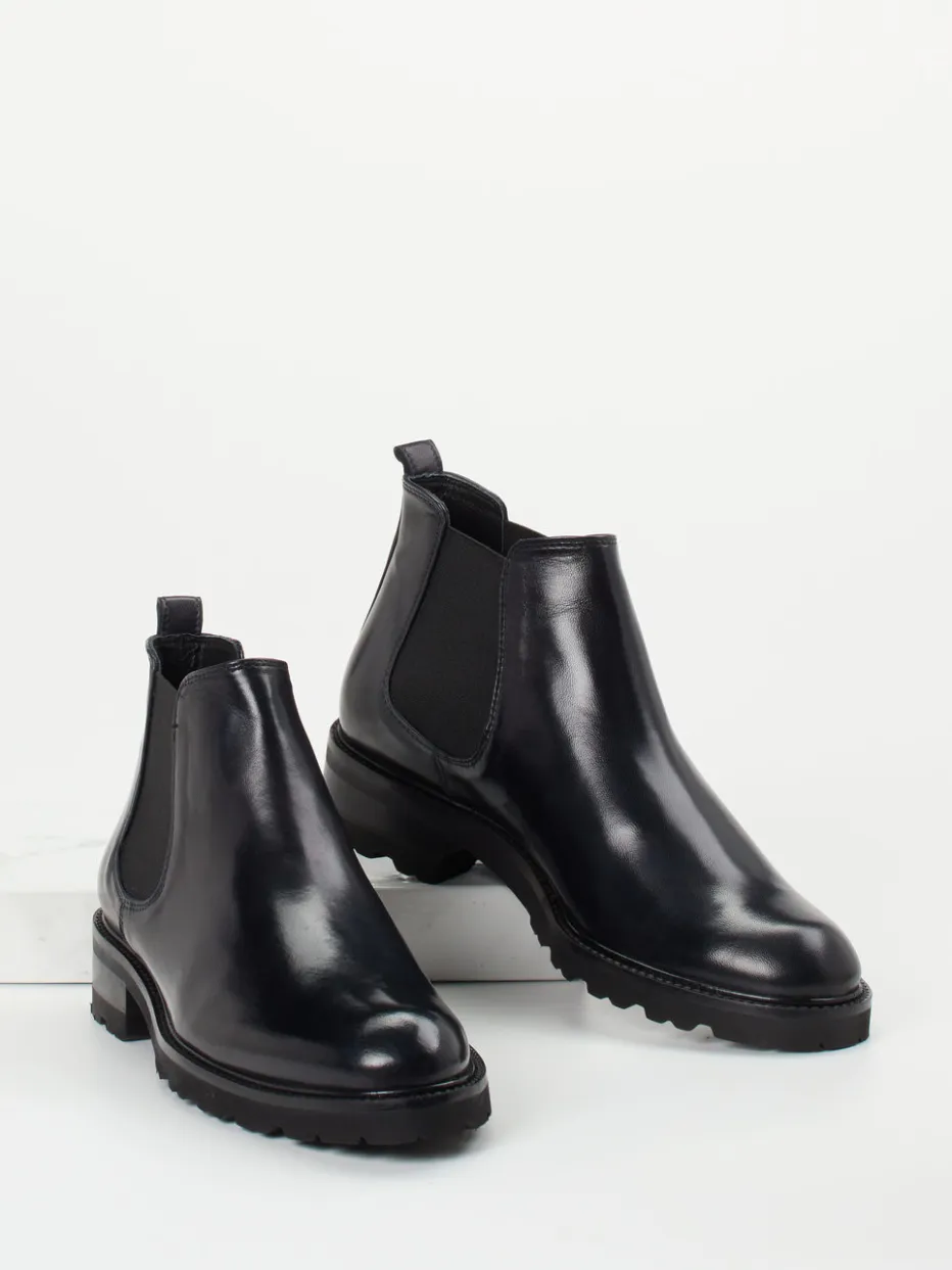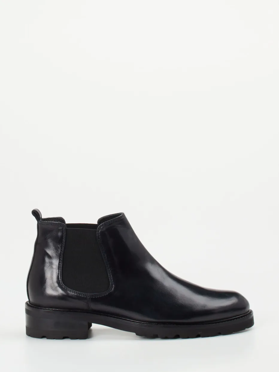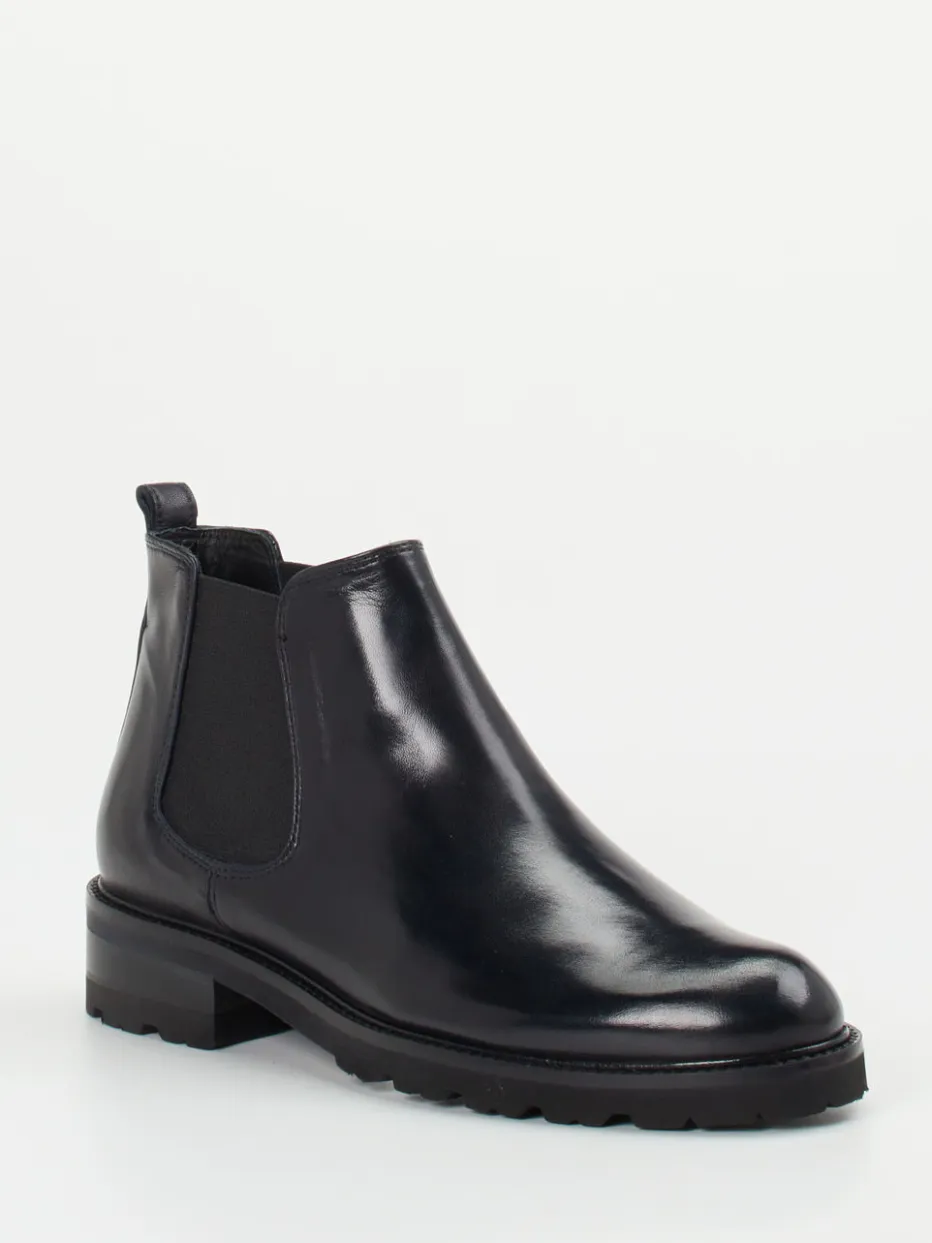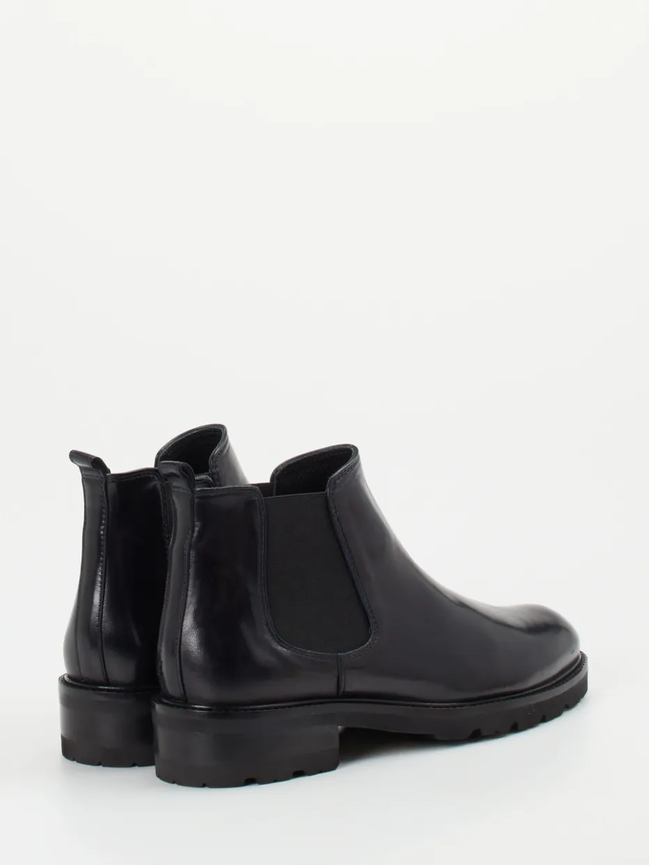 Diese Chelsea Boots verbinden hochwertiges Lammleder mit glänzender Oberfläche und einer markanten Profilsohle – ideal für puristische Looks mit Understatement.