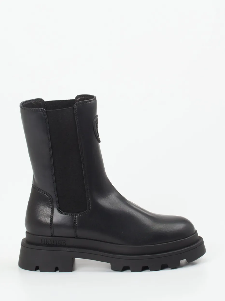 Die Chelsea Boots von Blauer verbinden robustes Design mit urbaner Klarheit. Hochwertiges Lammleder und profilierte Chunky-Sohle setzen ein starkes Zeichen im minimalistischen Streetstyle.