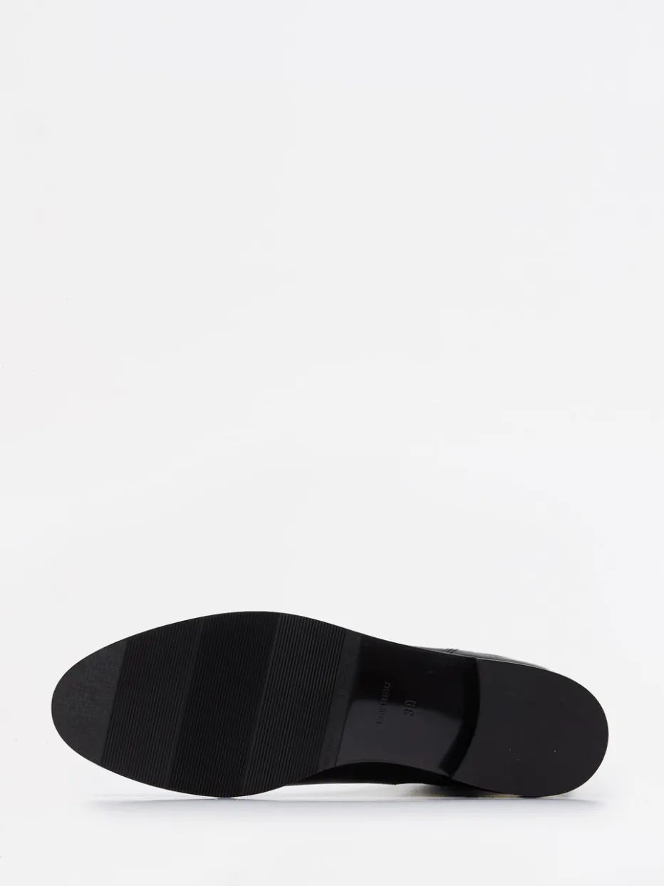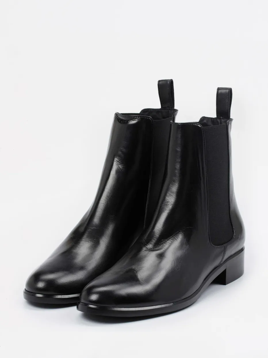 Elegant geerdet – Designklassiker mit modernem Anspruch.Konstantin Starke präsentiert klassische Chelsea Boots für Damen mit klarer Linie und edlem Anspruch. Für gehobene Alltagsmomente oder elegante Büro-Outfits: Das schwarze Lammleder überzeugt durch eine fein glänzende Oberfläche und präzise Verarbeitung. Breite, tonige Elastikeinsätze und Zuglaschen am Schaft sichern den bequemen Einstieg. Die knöchelhohe, zeitlose Silhouette trifft auf einen 3 cm Blockabsatz mit Gummisohle, was für eine angenehme Laufhöhe sorgt. Der Look verschmilzt gekonnt minimalistisches Design mit Anklängen britischer Heritage – stilistisch präzise im Trendsegment „Quiet Luxury“. Besonders gut kombinierbar zu klassischen Mänteln oder monochromen Office-Outfits. Ein femininer Allrounder mit Komfort und stilistischer Klarheit.