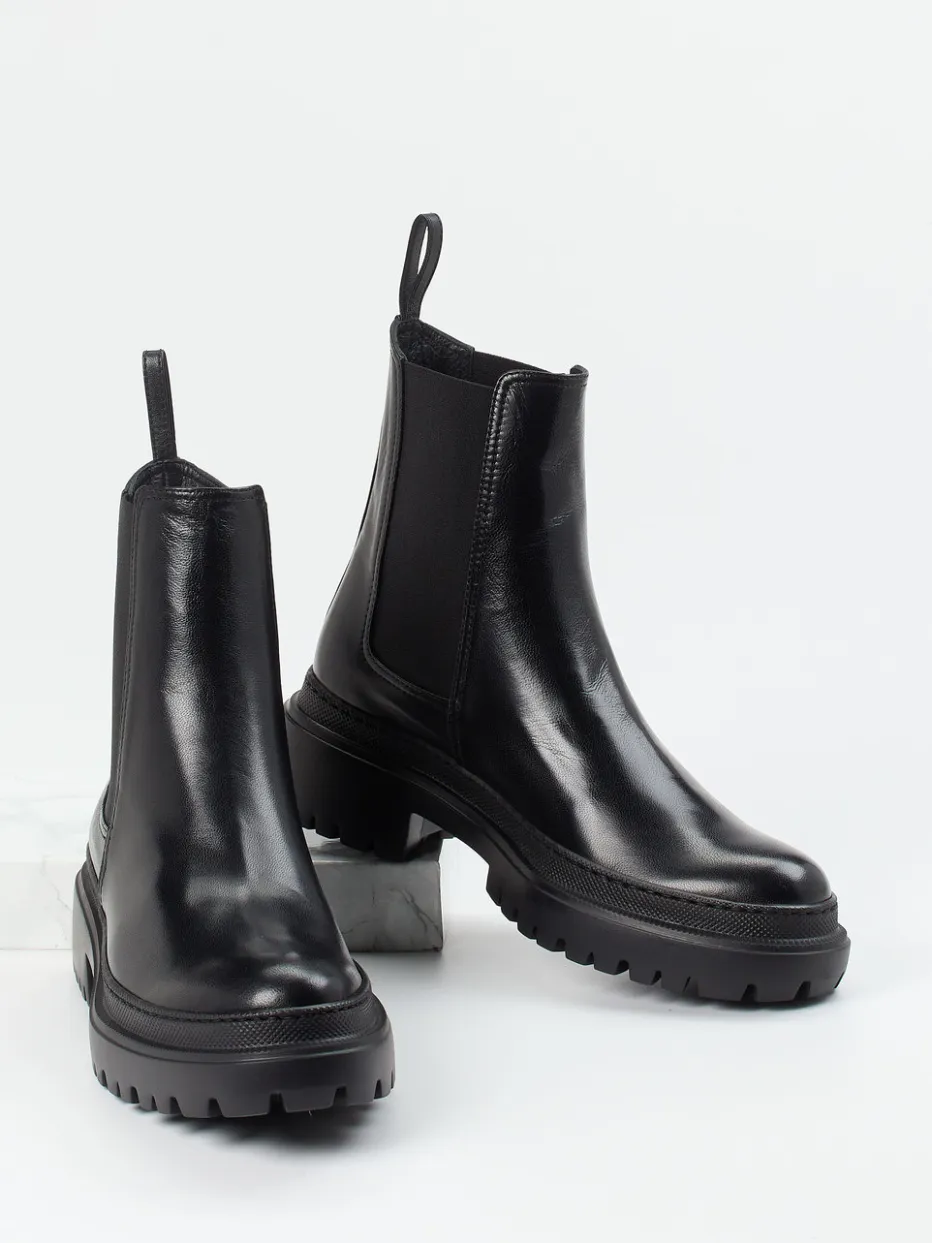 Diese Chelsea Boots verbinden hochwertiges Lammleder mit angesagter Profilsohle – ein stilvoller Kompromiss aus klassischem Minimalismus und modernem Streetstyle.