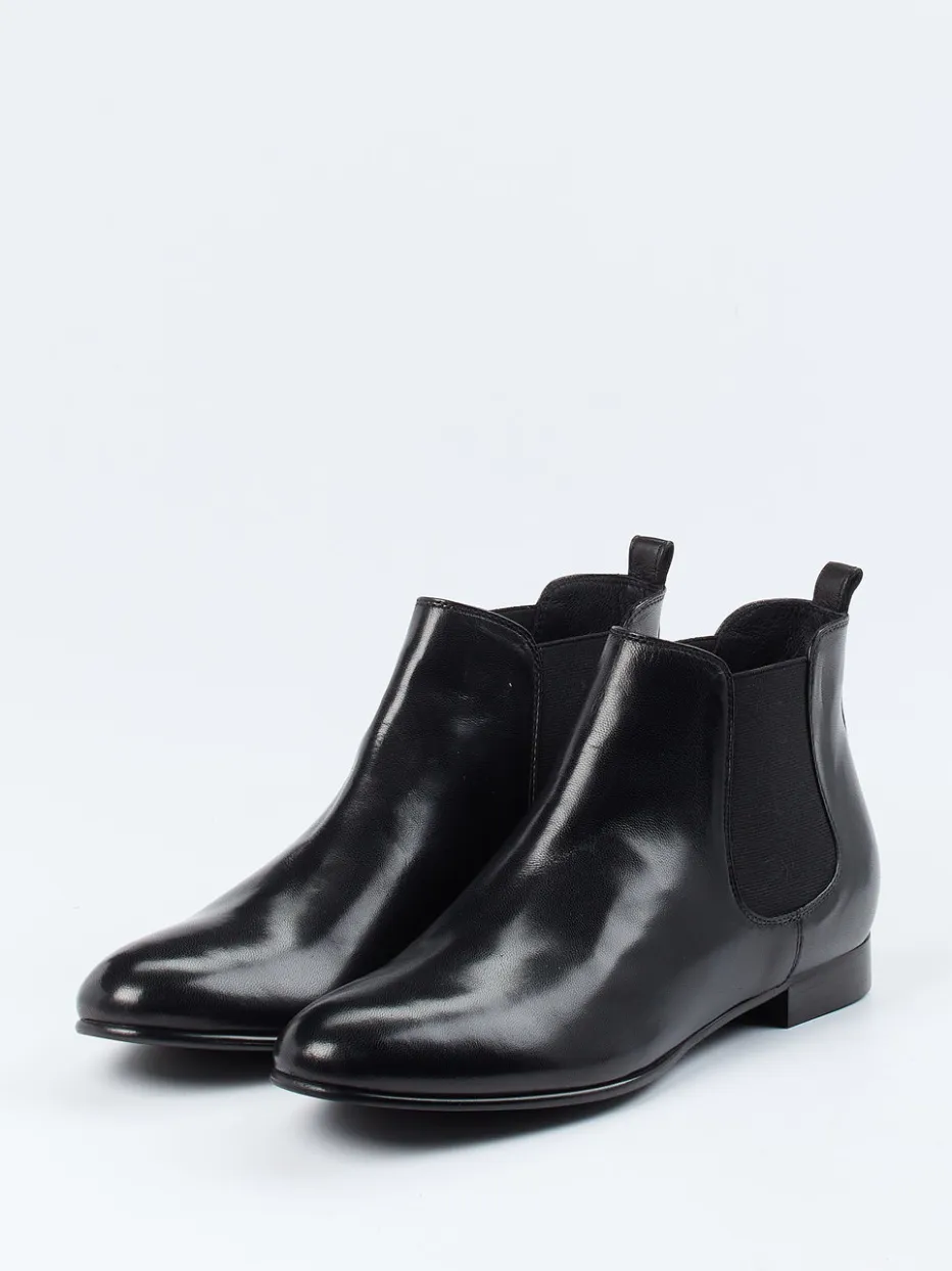 Konstantin Starke präsentiert diese schlichten, knöchelhohen Chelsea Boots auf einem leicht verschlankten Leisten. Das schwarze Lammnappaleder ist wunderbar weich und hat eine edle Ausstrahlung. Dekorativ und praktisch zugleich sind die beiden typischen Elasteinsätze. Sie bieten ebenso wie die Leder-Gummisohle einen angenehmen Tragekomfort. Eine schicke und feminine Stiefelette mit einem Hauch an Sportlichkeit!