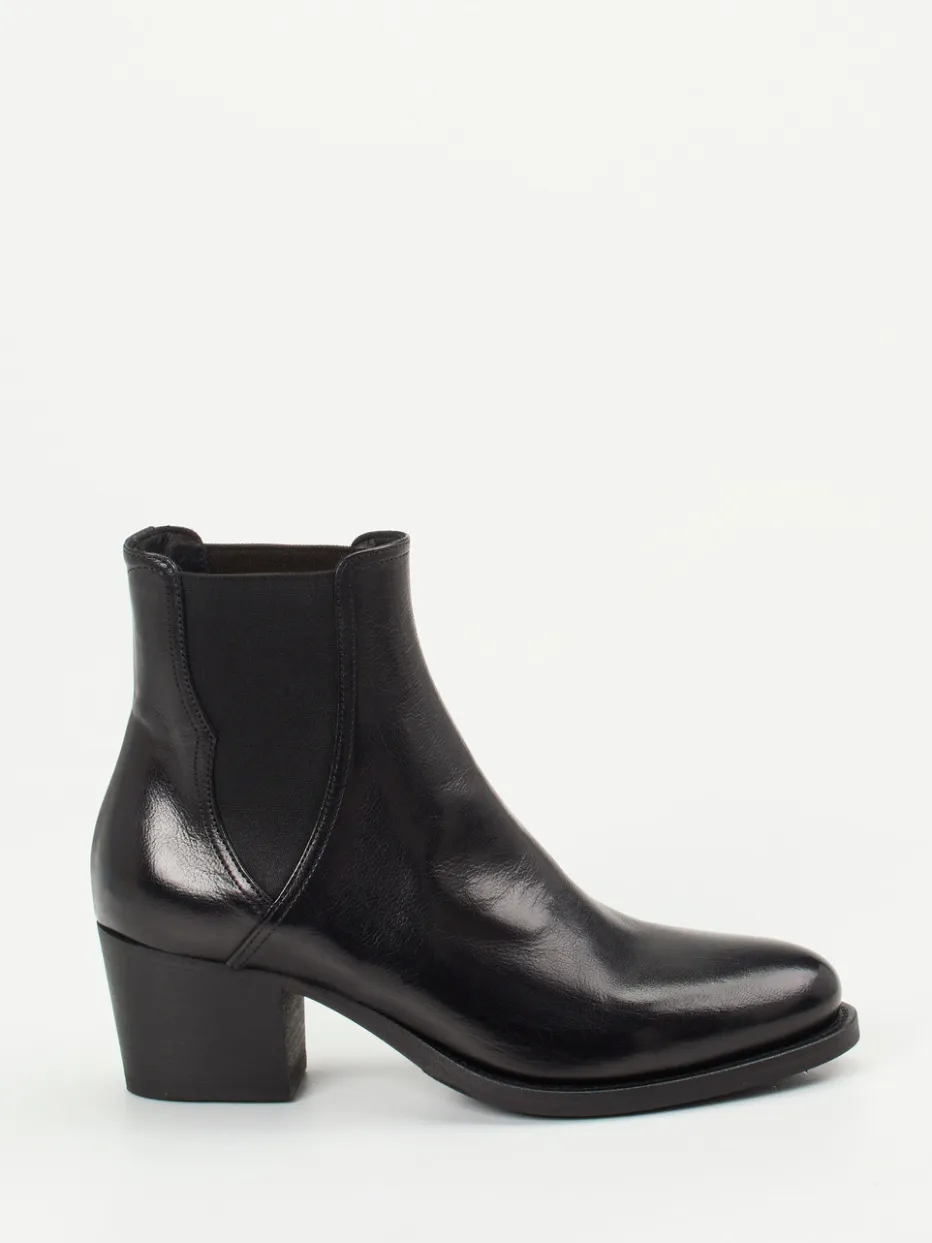 Stilsicherheit im minimalistischen Look.Die Marke Pantanetti präsentiert klassische Chelsea Boots für Damen. Ideal für moderne Business-Ansprüche oder stilvolle Freizeitmomente: Der hochwertige Schaft aus schwarzem, glänzendem Lammleder zeigt sich mit typischen seitlichen Elastikeinsätzen und einer klaren, knöchelhohen Silhouette. Die tonige Profilsohle gewährleistet Trittsicherheit, der stabile Blockabsatz setzt ein dezentes modisches Statement. Inspiriert von Quiet Luxury und Classic Western entstehen vielseitig kombinierbare Begleiter zu Kaschmirmantel oder Ledertasche. Herausragender Komfort trifft auf elegantes Design mit italienischer Handschrift.