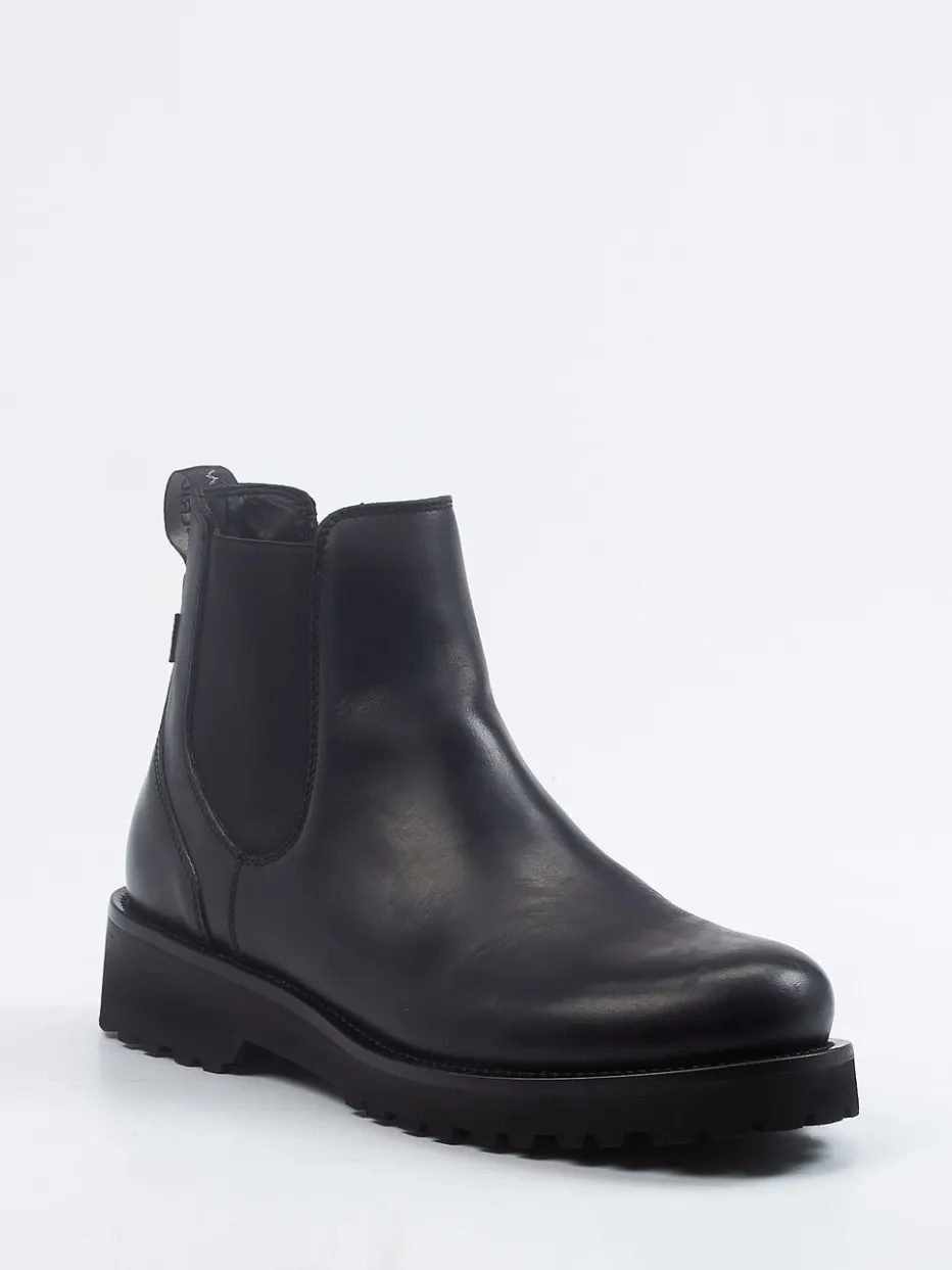 Mit sattschwarzem Nubukleder und robuster Vibram-Sohle verbinden diese Chelsea Boots zeitlose Eleganz mit funktionaler Stärke – ideal für anspruchsvolle Urban Looks.