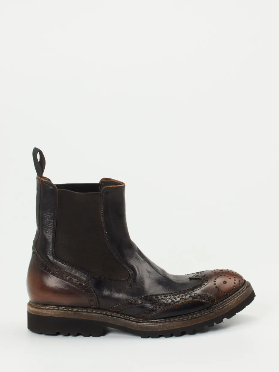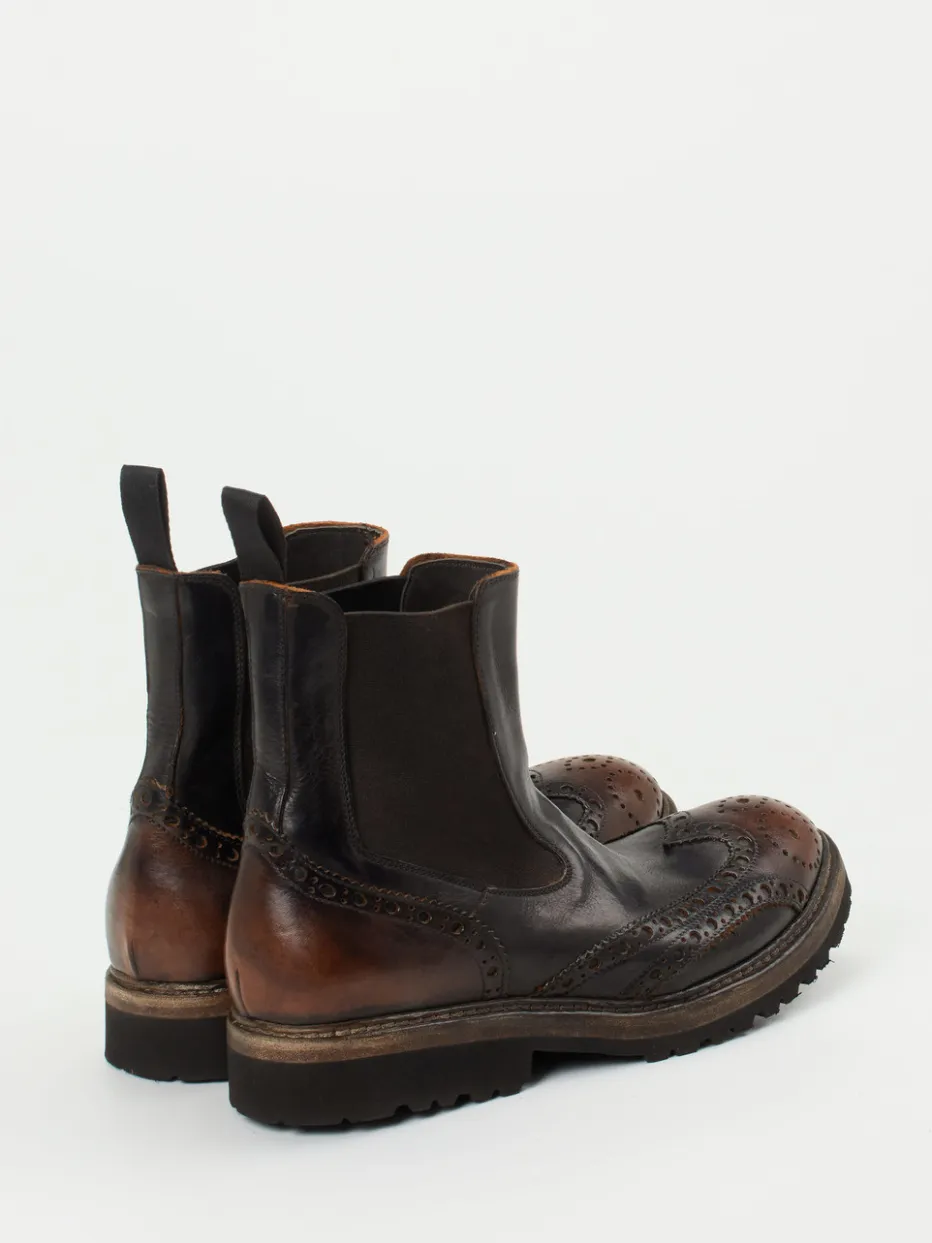 Die Chelsea Boots von Shoto verbinden handwerkliche Präzision mit stilistischer Substanz. Charaktervolle Brogue-Details auf gewaschenem Pferdeleder treffen auf moderne Vibram-Sohle.