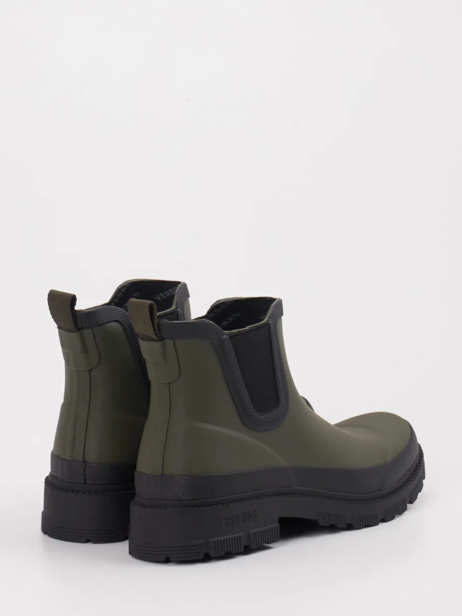 Robust im Regen, stilvoll im Alltag.Verbenas präsentiert mit diesen Chelsea Boots eine wetterfeste Variante für Freizeit und Stadt. Die olivgrünen Stiefeletten aus Synthetik kommen in matter Oberfläche und überzeugen mit tonalen Elastikeinsätzen, abgerundeter Silhouette und einer ausgeprägt profilierten Gummisohle. Eine praktische Zuglasche erleichtert den Einstieg; das textile Innenfutter ergänzt den Tragekomfort an nasskalten Tagen. Inspiriert vom Utility-Trend und der Gorpcore-Ästhetik, passen sie zu Thermo-Leggings und Outdoorjacken gleichermaßen. Verbenas kombiniert zuverlässige Funktion mit urbanem Designverständnis.