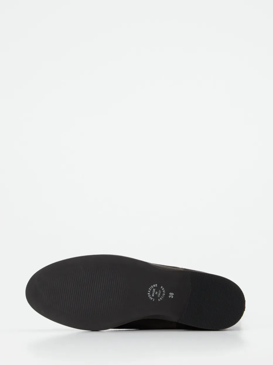 Klassiker neu interpretiert.Andrea Puccini präsentiert elegante Chelsea Boots für Damen. Ideal für herbstliche Stadtspaziergänge oder den stilvollen Büroalltag: Dieses Modell besteht aus hochwertigem, schokoladenbraunem Veloursleder mit samtigem Griff. Seitlich eingesetzte tonige Elastik-Partien und praktische Zuglaschen unterstreichen die klassisch-schlanke Silhouette. Die farblich abgestimmte Gummisohle mit flachem Absatz sorgt für angenehmen Laufkomfort. Reduziert im Stil, prägnant im Auftritt – inspiriert vom Minimalismus und britischen Heritage-Designs. Besonders harmonisch in Kombination mit Wollmänteln oder Lederaccessoires in Cognac. Ein zeitloser Begleiter mit dezentem Luxusanspruch von Andrea Puccini.