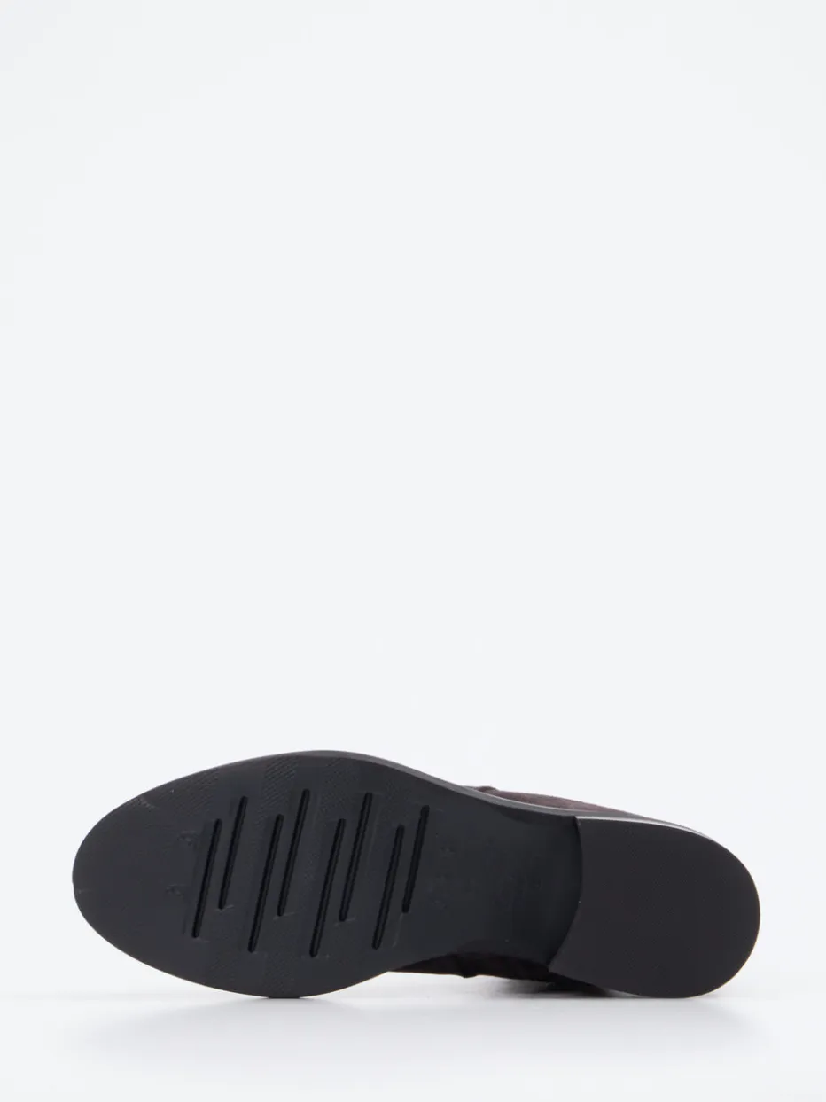 Elegant durch Herbst und Winter. Konstantin Starke liefert mit dieser Damen-Stiefelette ein Modell, das zeitlose Chelsea-Form mit funktionaler Raffinesse verbindet. Ideal für wechselhafte Tage zwischen Büro und Stadtspaziergang: Die Stiefeletten sind aus dunkelbraunem Veloursleder gefertigt und zeigen eine matte Oberfläche. Charakteristisch sind die knöchelhohe Silhouette, ein melierter Elastikeinsatz in Naturtönen sowie ein praktischer Reißverschluss an der Innenseite. Die profilierte Gummisohle bietet rutschhemmenden Halt, während dezente Ton-in-Ton-Nähte die klare Linie des minimalistisch inspirierten Designs betonen. Modisch passen sie zum „Quiet Luxury“-Trend und ergänzen stilvoll klassische Herbstgarderoben. Ein zurückhaltend-exklusiver Schuh im hochwertigen Materialmix mit saisonaler Stilaffinität.