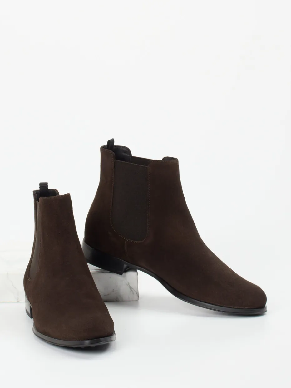 Diese Chelsea Boots aus dunkelbraunem Veloursleder vereinen klassische Linien mit edler Zurückhaltung – ein stilsicherer Begleiter für den Herbst.