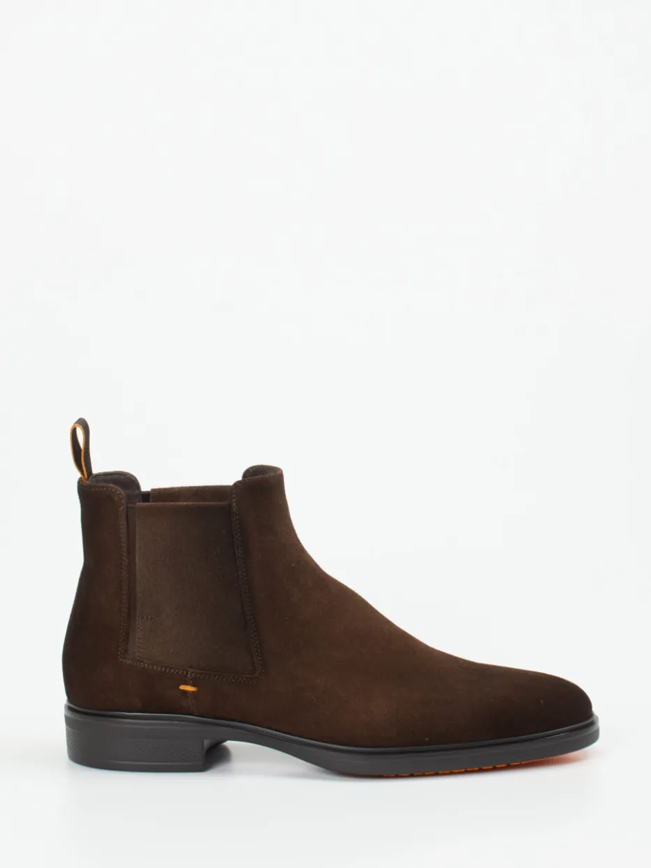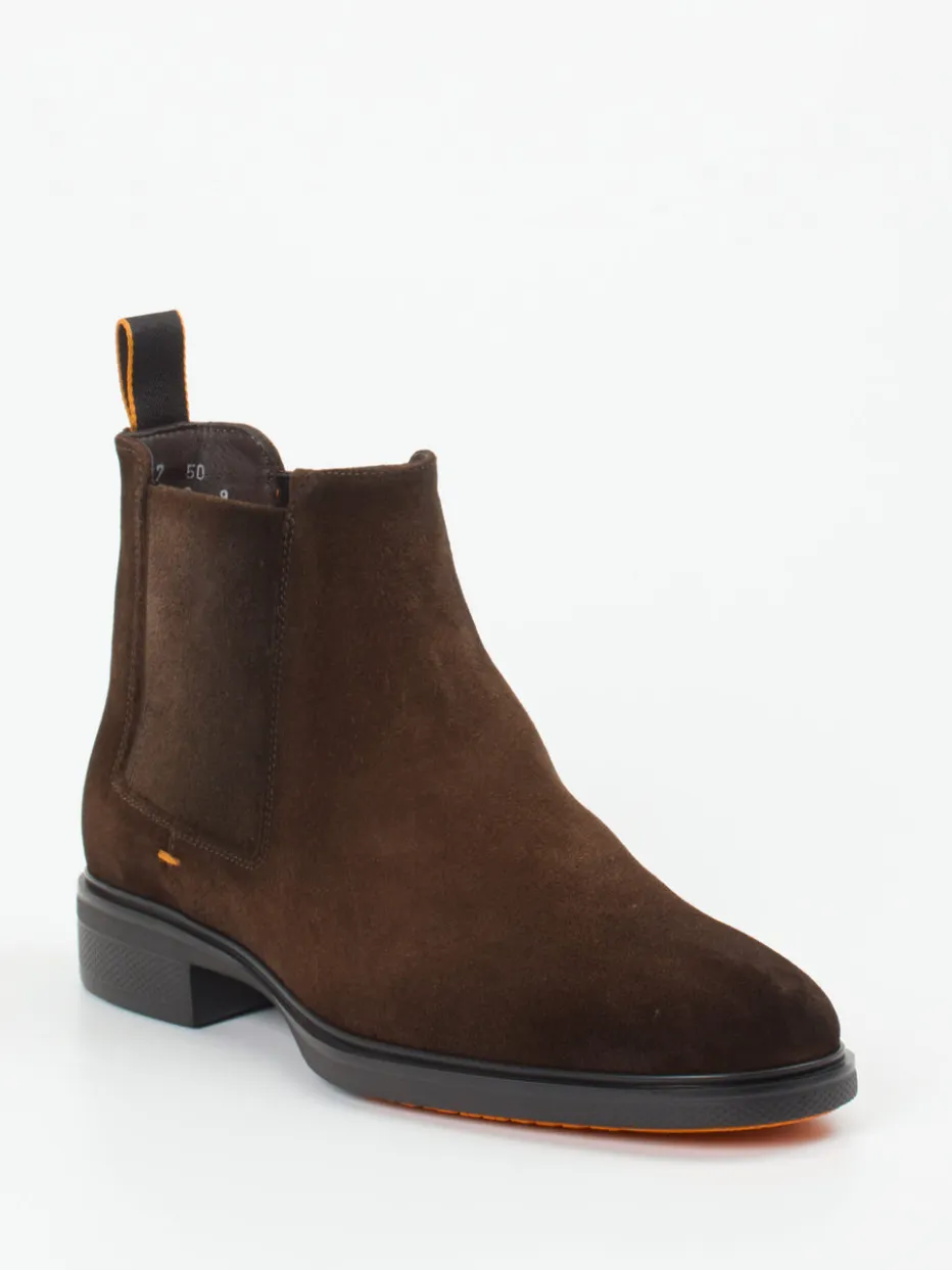 Eleganz trifft Understatement.Santoni präsentiert Chelsea Boots für Herren – handwerklich gefertigt mit Augenmerk auf Komfort und Design. Für Büro, Reise oder Tagesausflüge: Das kaffeebraune Veloursleder mit samtiger Oberfläche zeigt Tiefe und Raffinesse. Klassisch-knöchelhoch geschnitten, mit elastischen Einsätzen und komfortbetonter Schlupfform, ergänzt durch ein weiches Kalblederfutter in Orange. Besonderes Highlight: Die rutschfeste Profillaufsohle mit orangefarbener Akzentfläche – robust, stilbewusst und funktional. Inspiriert vom Heritage-Stil, mit Anklängen an „Quiet Luxury“ und dezenter Farbkontrast-Ästhetik. Fein gearbeitete Details unterstreichen Santonis Anspruch an kompromisslose Qualität.